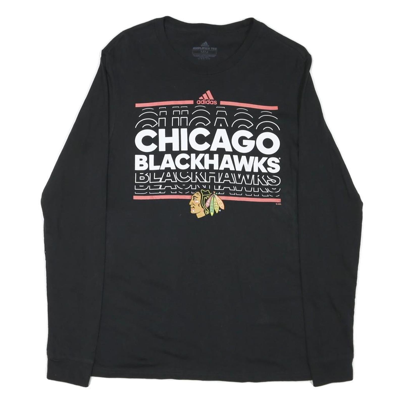 ADIDAS Mens Black Chicago Blackhawks Long Sleeve Crew Neck Cotton Blend T-Shirt