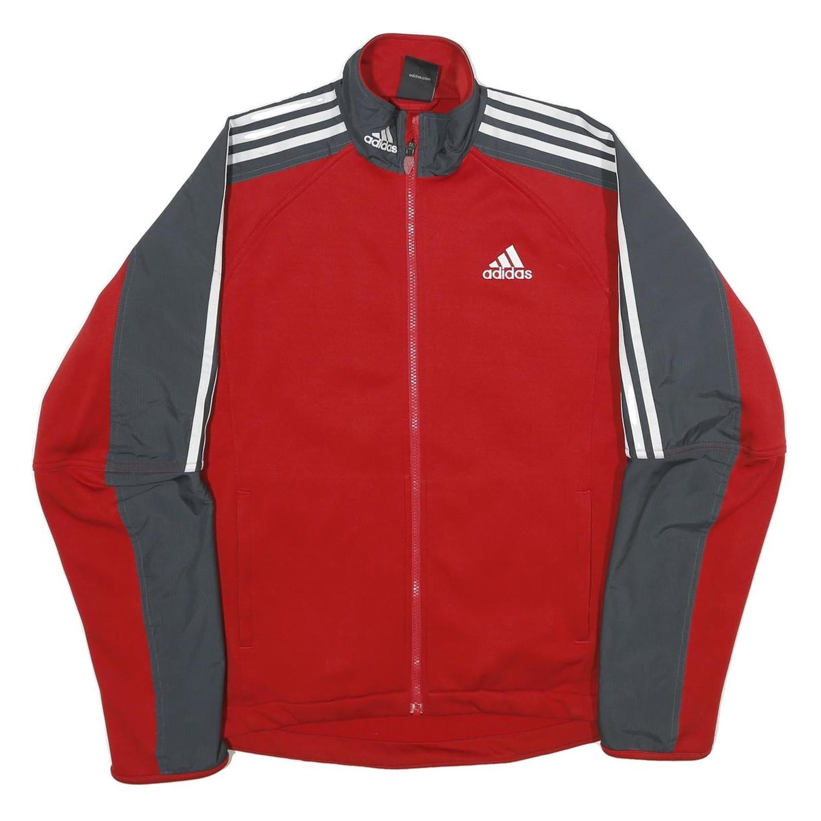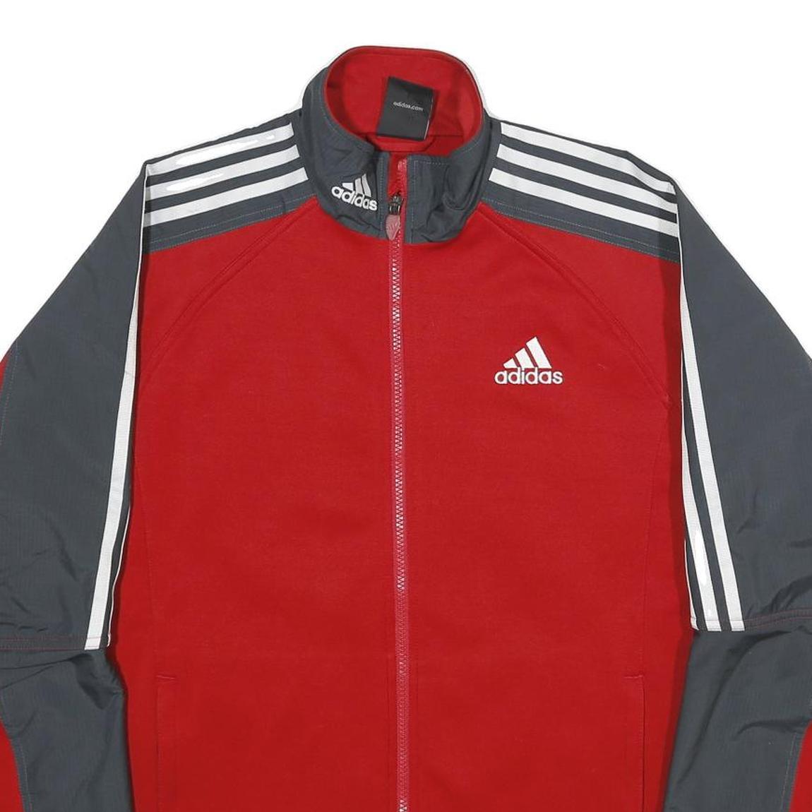 ADIDAS Mens Red & Grey Track Zip Jacket M Polyester Sportswear Casual