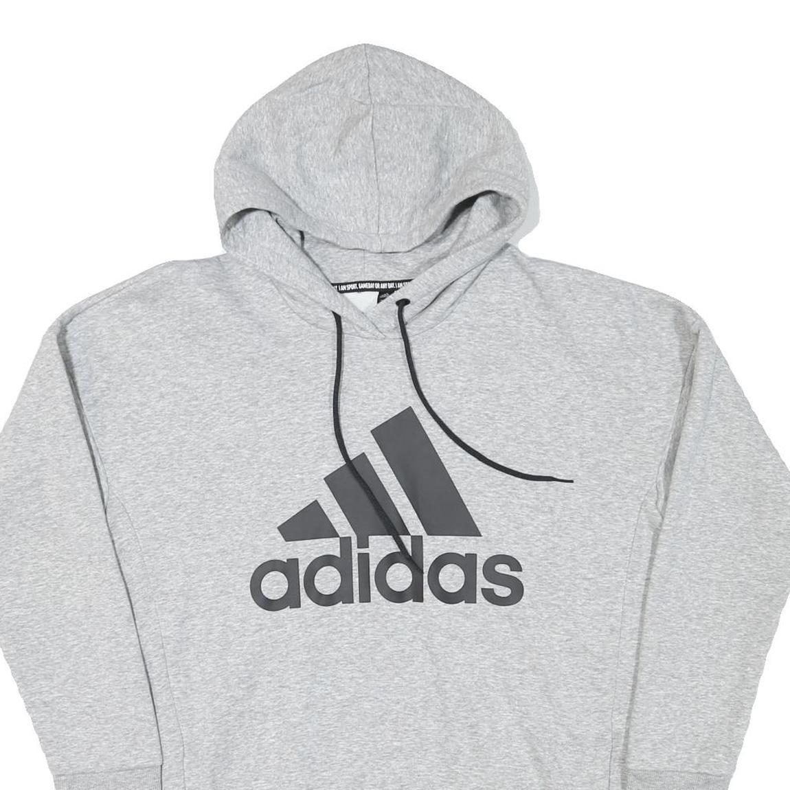 ADIDAS Womens Grey Hoodie L Cotton Blend Pullover Sports Casual Sweatshirt
