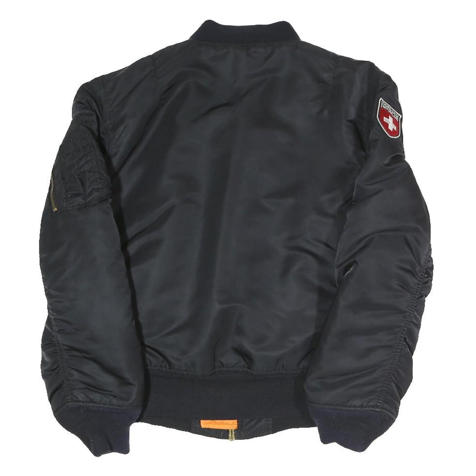 ALPHA INDUSTRIES Womens Black & Orange Flight Jacket L Nylon Woven Bomber Zip