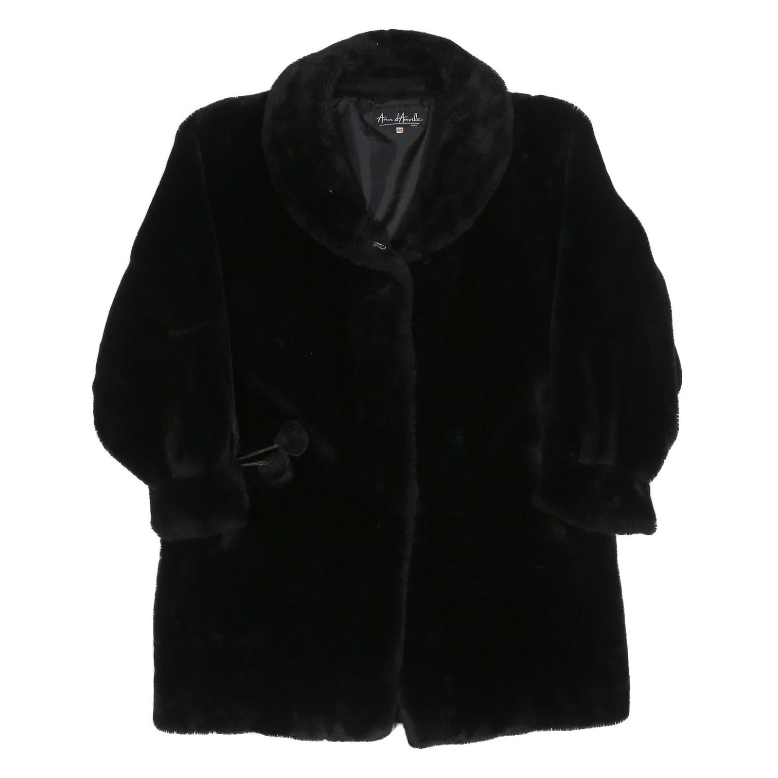 This ANN D'ANVILLE womens jacket features a rich black colour in a soft plush faux fur fabric, offering a luxurious and elegant look. It has a classic button closure and a rounded collar that adds a touch of vintage charm. The jacket has long sleeves and a straight fit that comfortably sits at hip length.