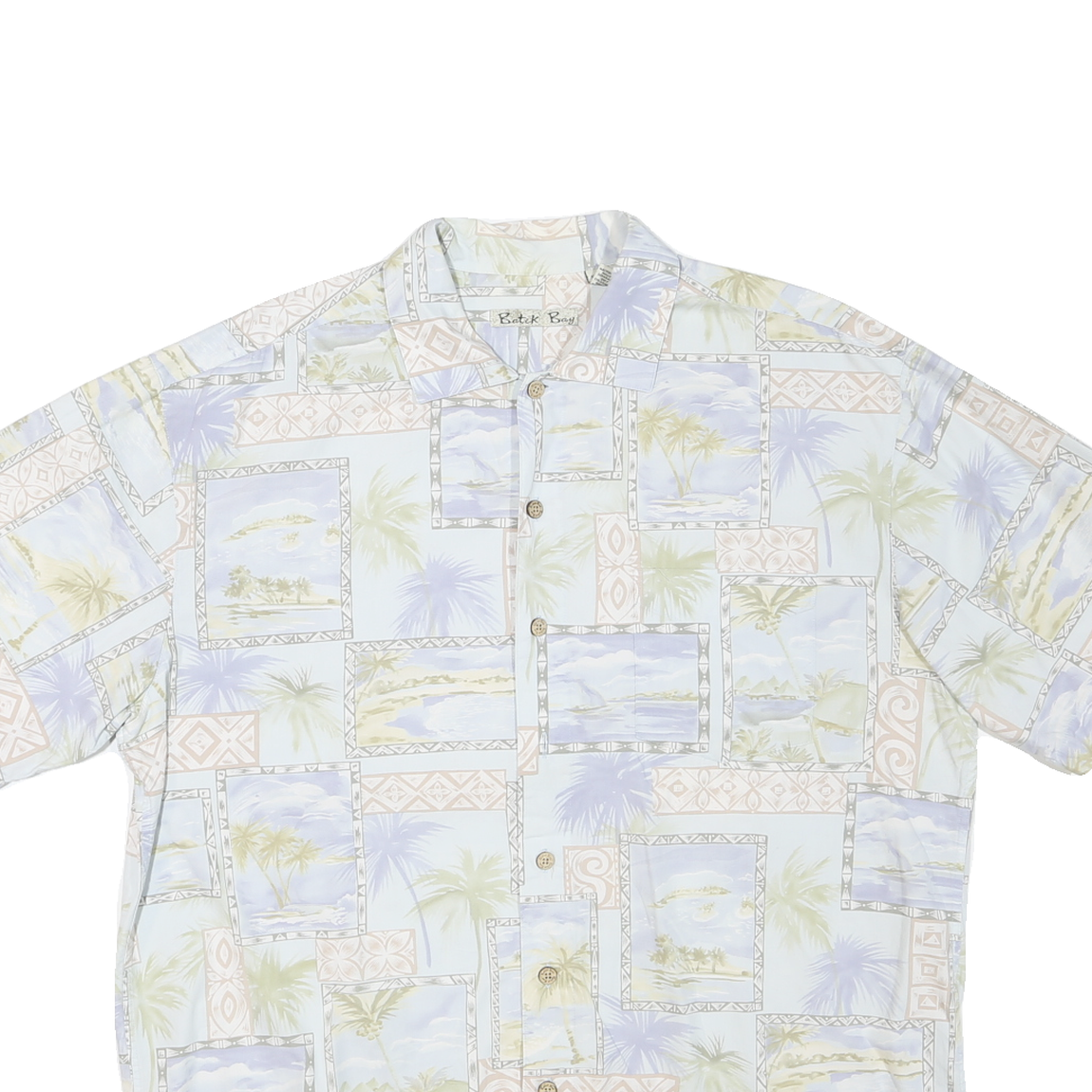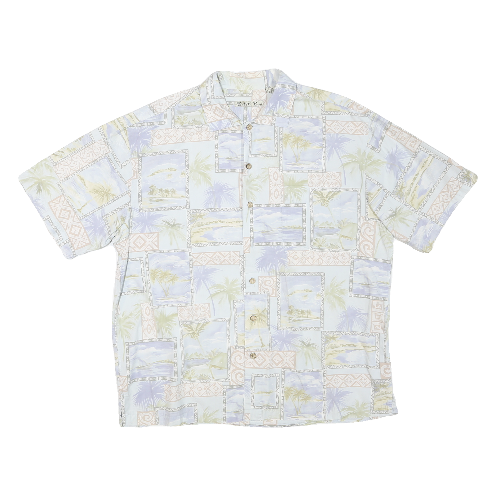 Batik Bay is known for casual resort wear that combines comfort with island-inspired prints. This shirt is sized Large and designed for mens relaxed fits, perfect for vacations, beach days or easygoing everyday looks during summer months.