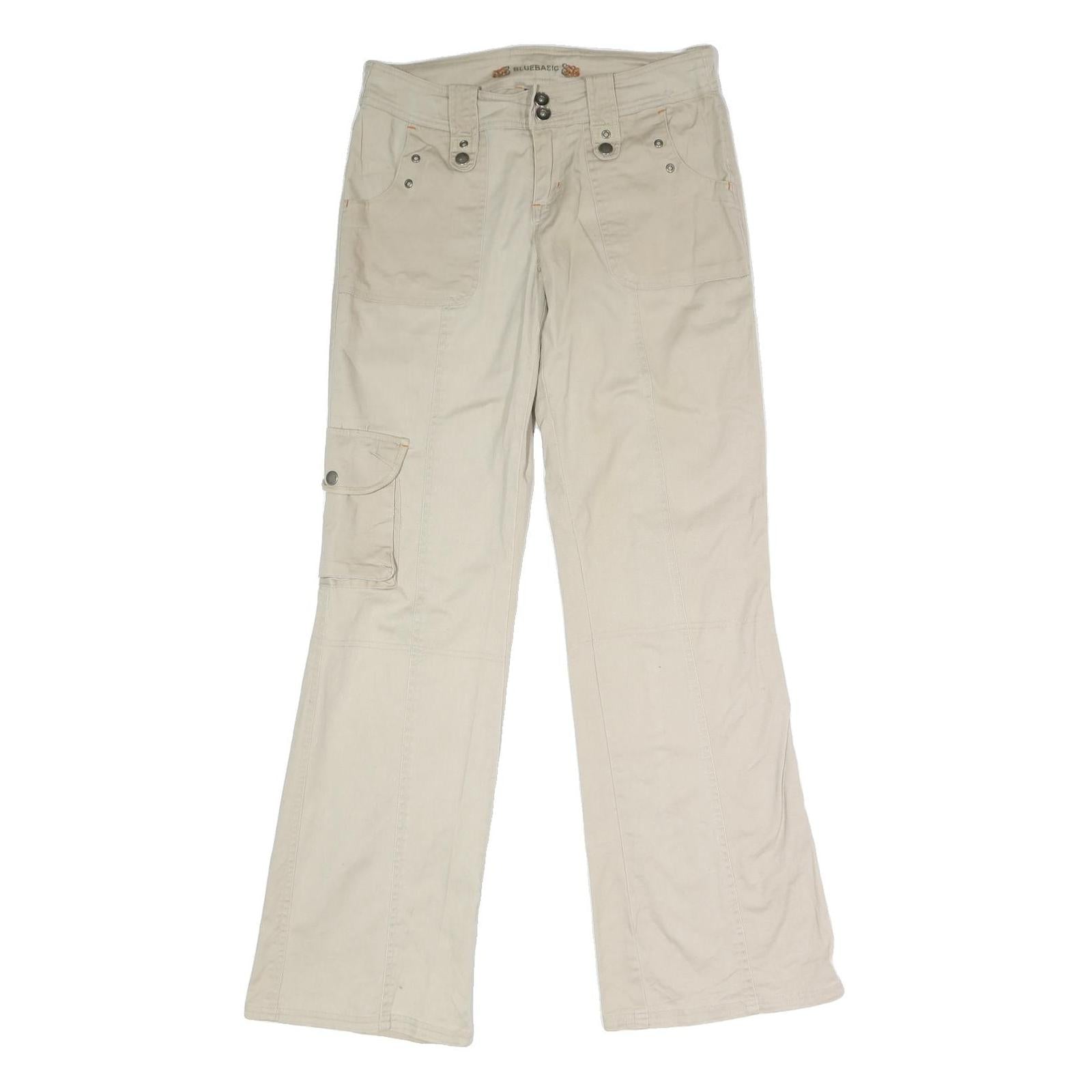 BLUE BASIC Womens Cotton Blend Beige Regular Fit Straight Leg Trousers W32 L32