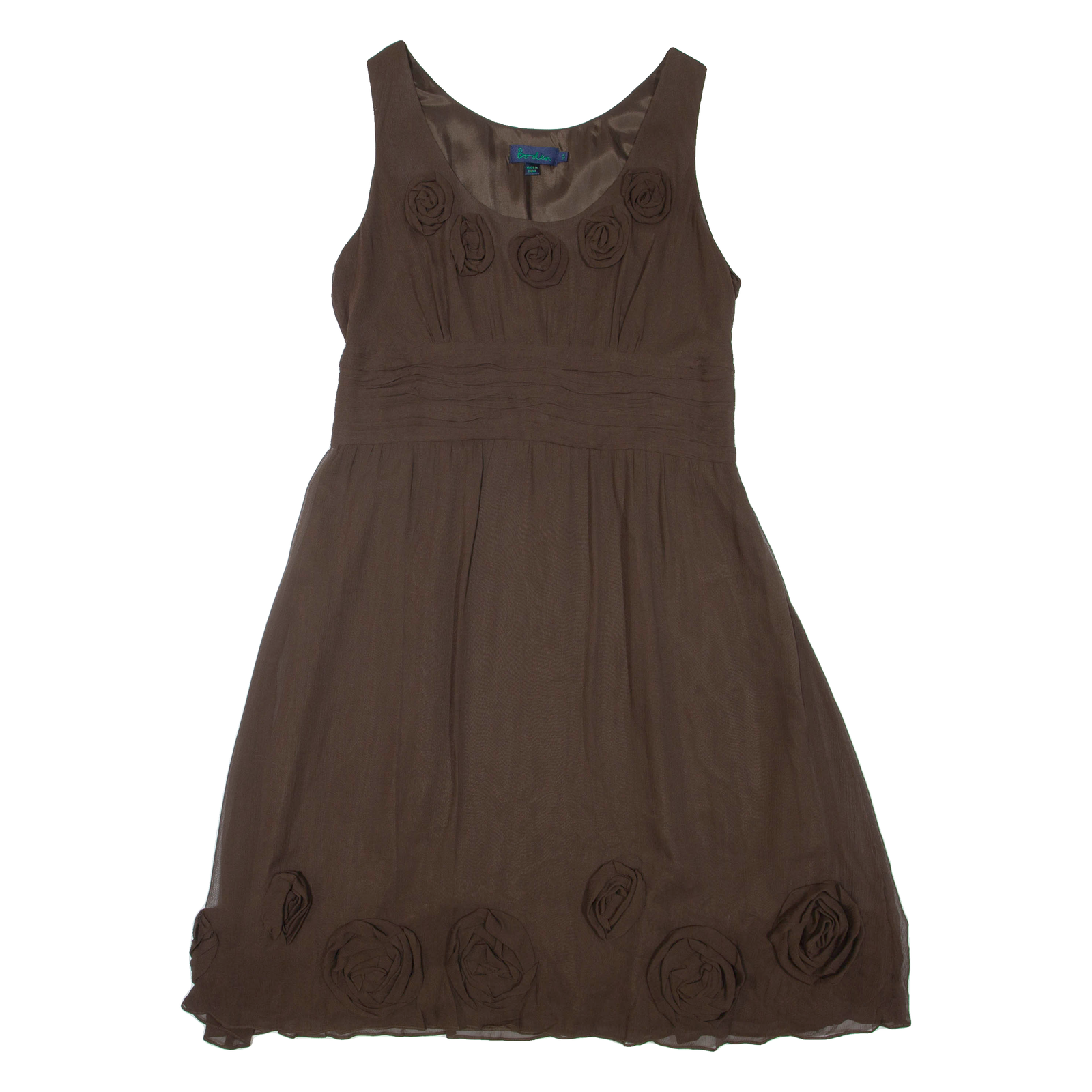 BODEN Womens Day Dress Brown Silk Sleeveless Knee Length XL