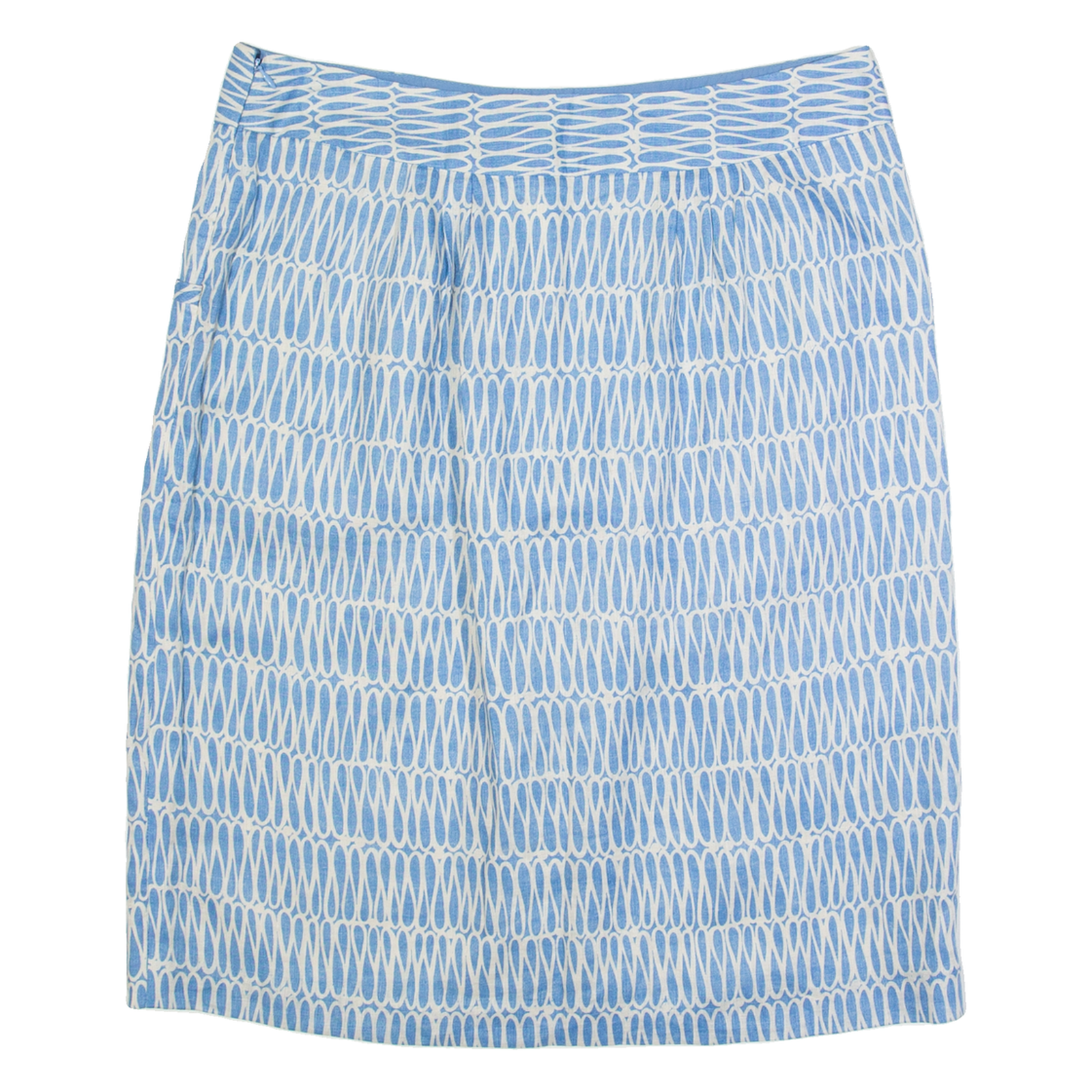 BODEN Womens Straight Skirt Blue Knee Length Linen Crazy Pattern UK 14