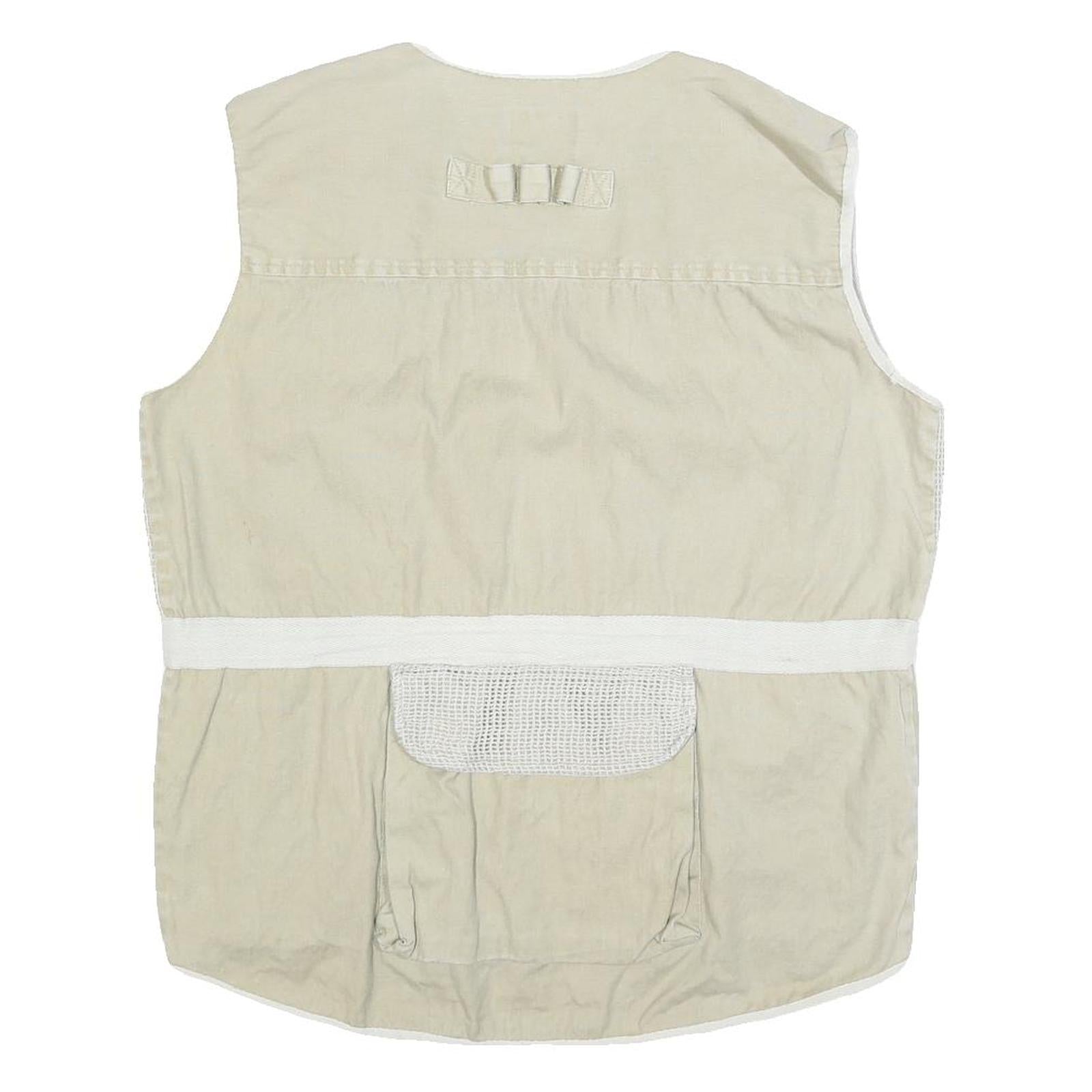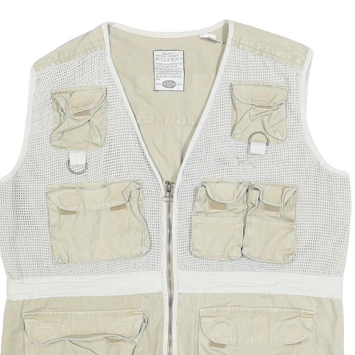 BUGLE BOY Mens Beige Cotton Utility Mesh Jacket L Multi Pocket Zip Button