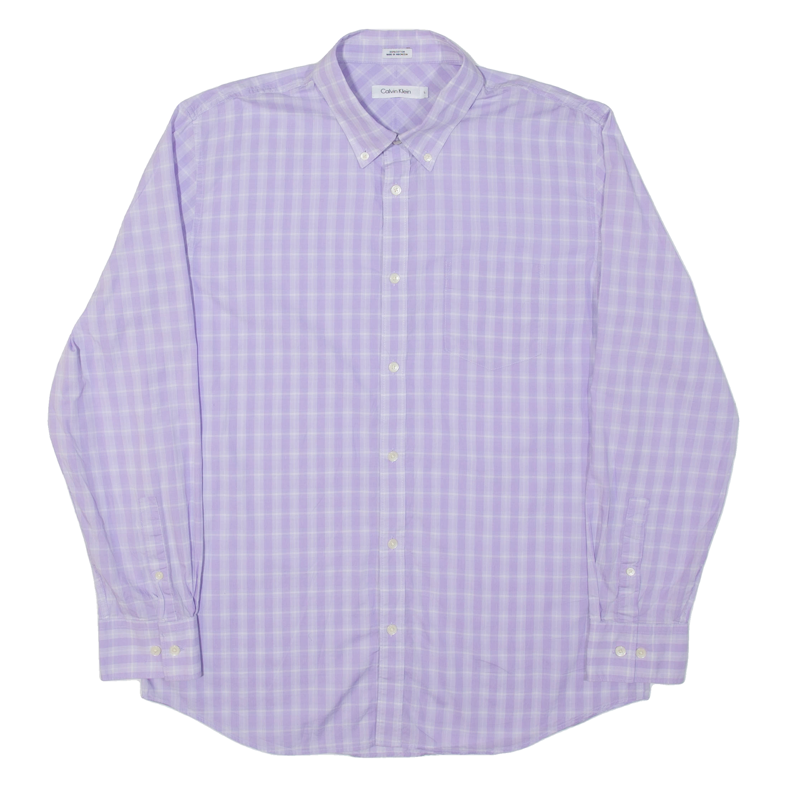 CALVIN KLEIN Mens Shirt Purple Plaid Long Sleeve L