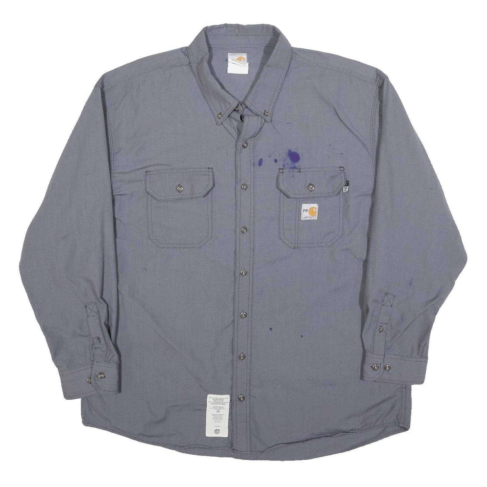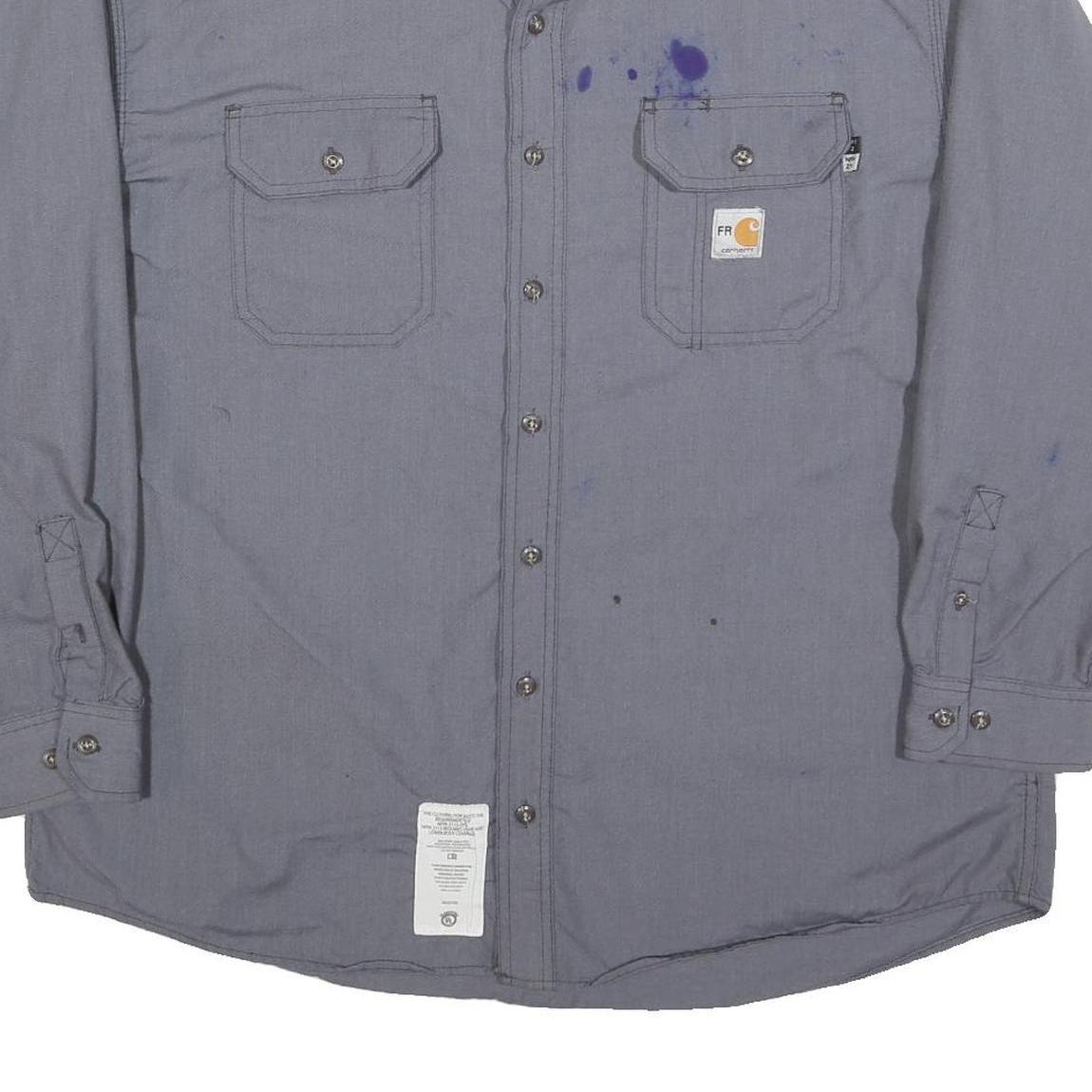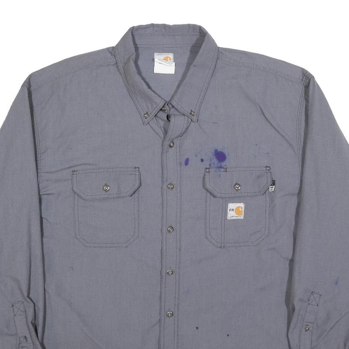 CARHARTT Mens Grey Work Shirt 2XL Cotton Blend Long Sleeve Button Closure