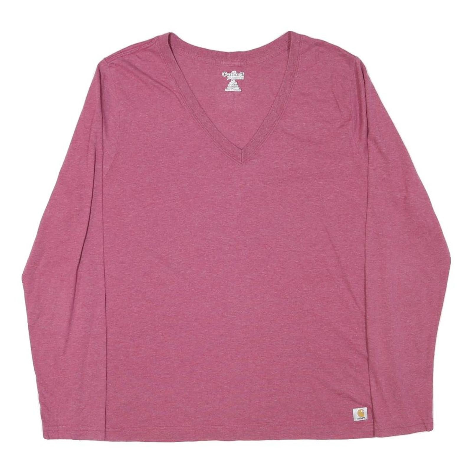 CARHARTT Womens Pink Long Sleeve V-Neck Cotton Blend T-Shirt XL Casual Comfort