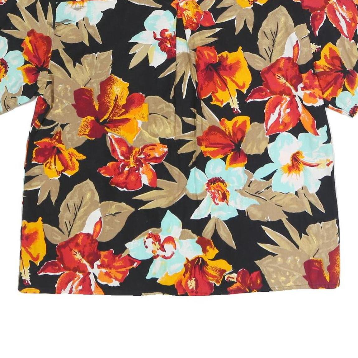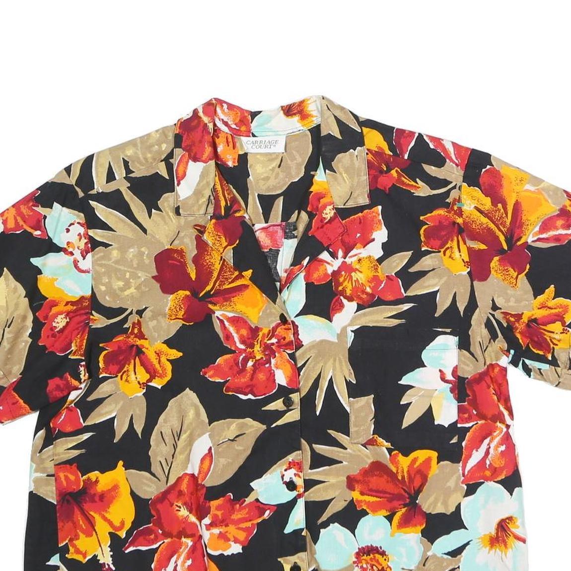 CARRIAGE COURT Womens Black Red & Beige Floral Shirt Short Sleeve Collared L