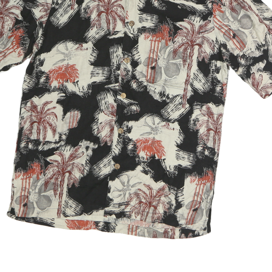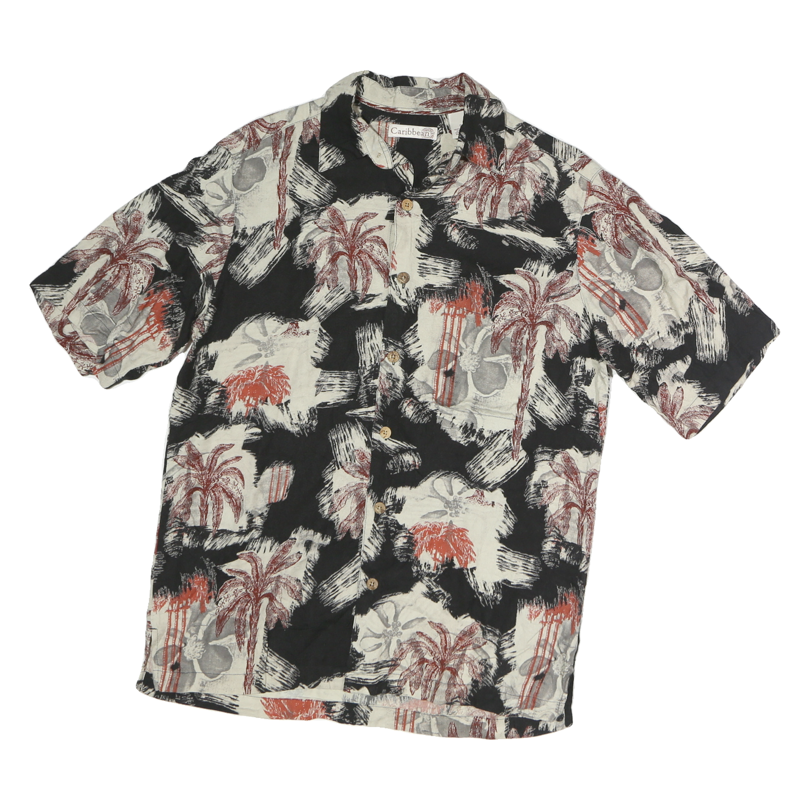 CARRIBEAN Mens Black & Cream Red Palm Tree Print Cotton Shirt S Casual Holiday