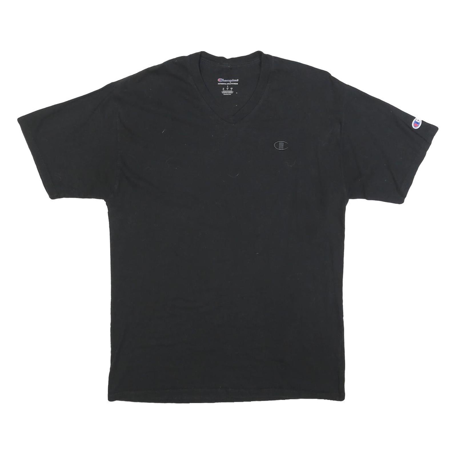 CHAMPION Mens Black V-Neck T-Shirt L Cotton Blend Casual Sportswear Logo