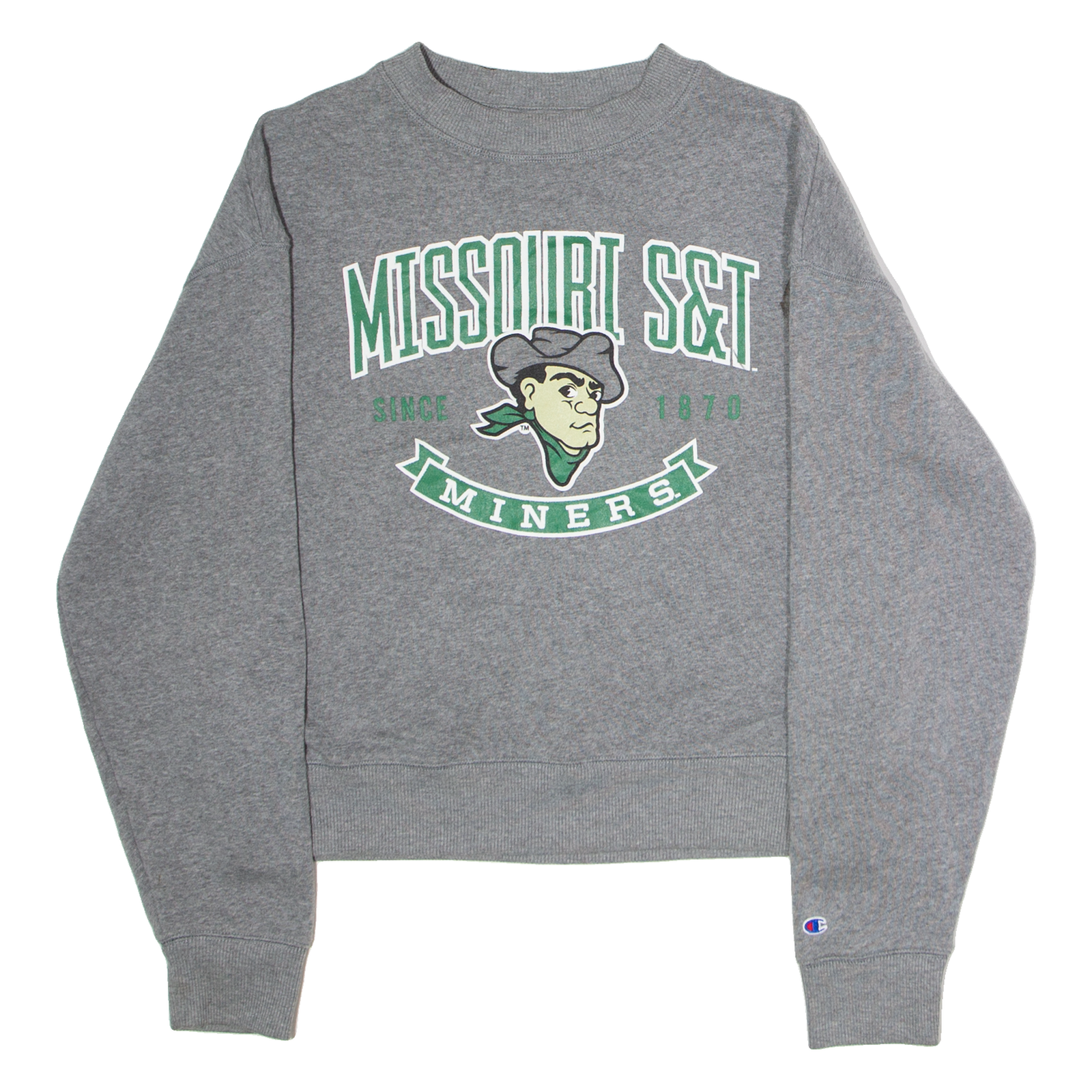 CHAMPION Missouri S&T Miners Cropped Womens Sweatshirt Grey Crew Neck USA S