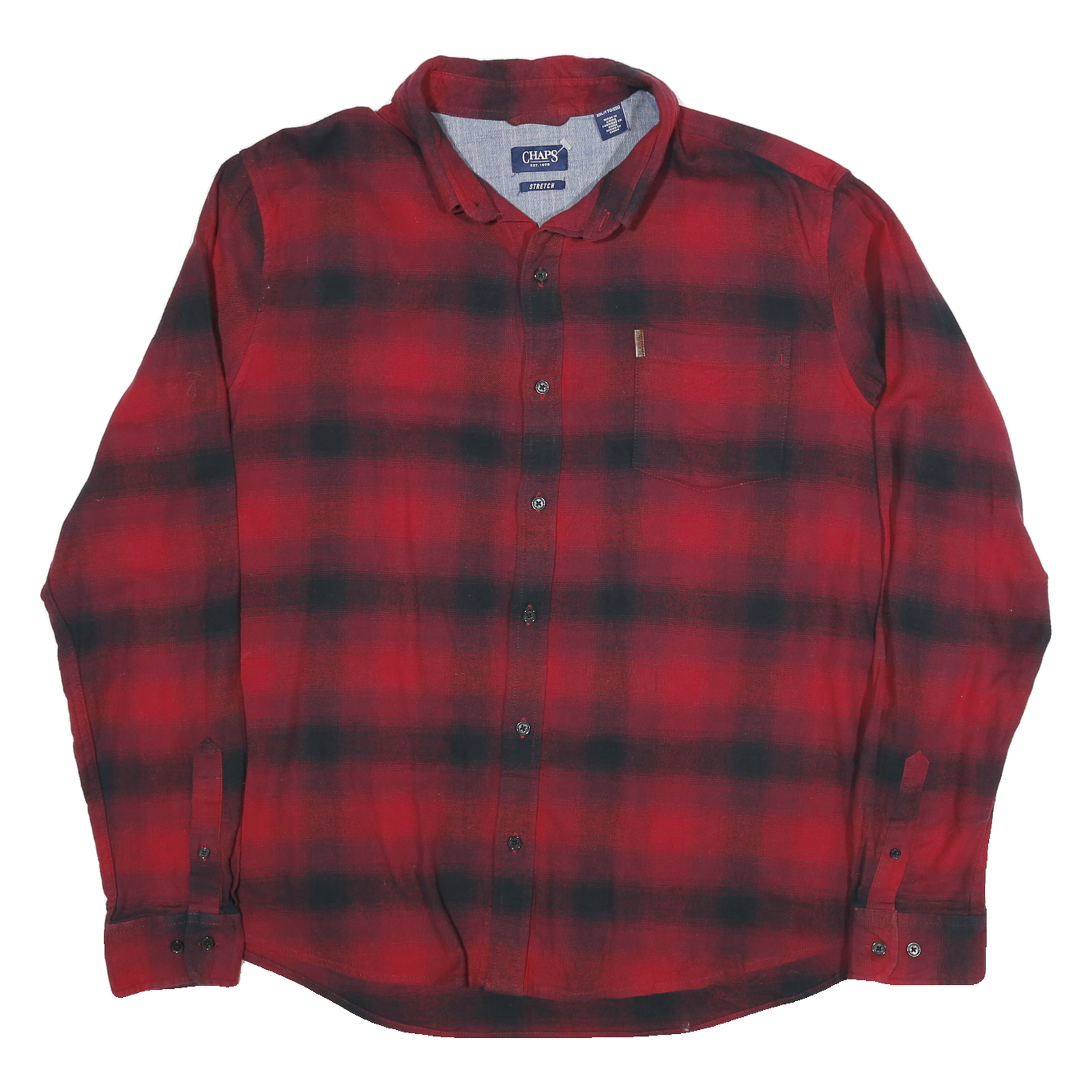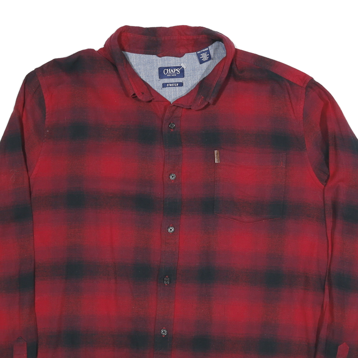 CHAPS Mens Red & Black Checked Shirt 2XL Cotton Blend Classic Casual Long Sleeve