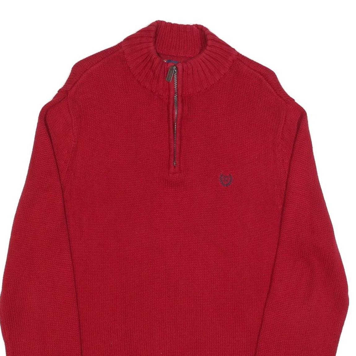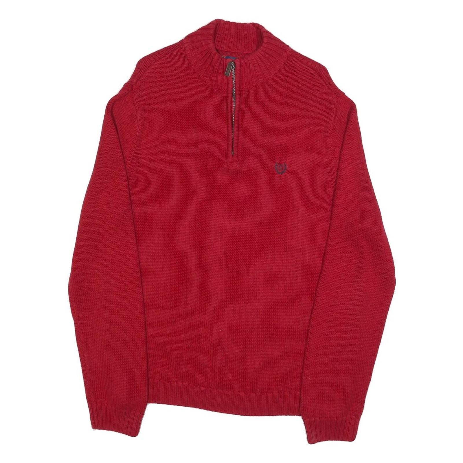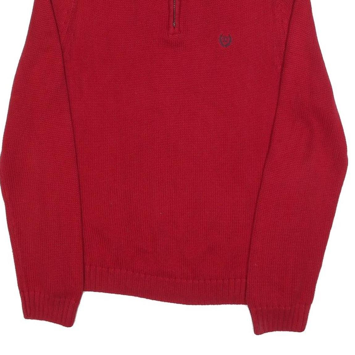 CHAPS Mens Red Plain Pullover Half Zip Jumper Cotton L Casual Classic Knit
