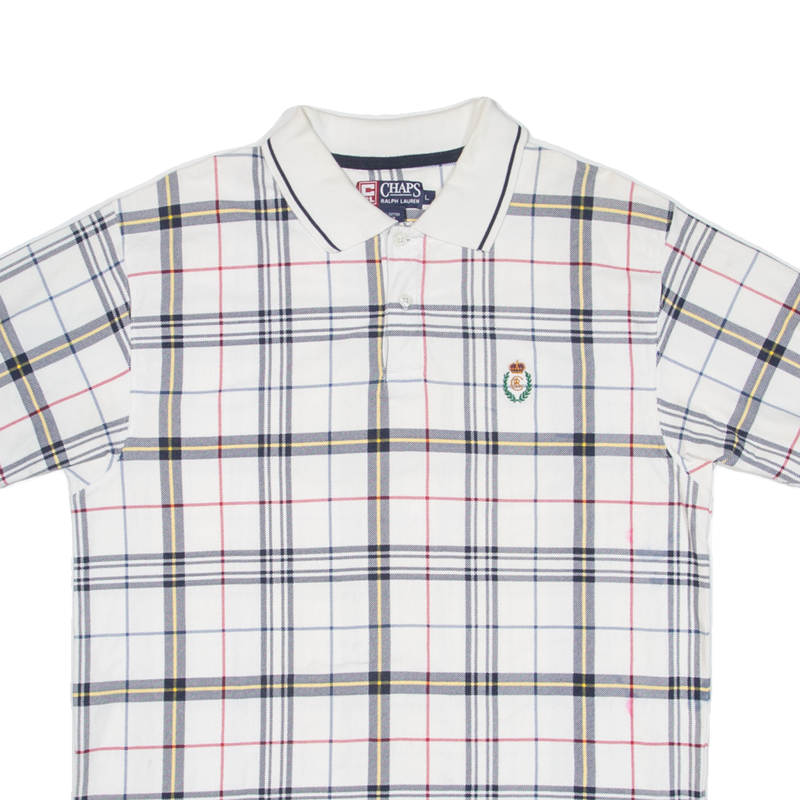 CHAPS RALPH LAUREN Mens Polo Shirt White Check L