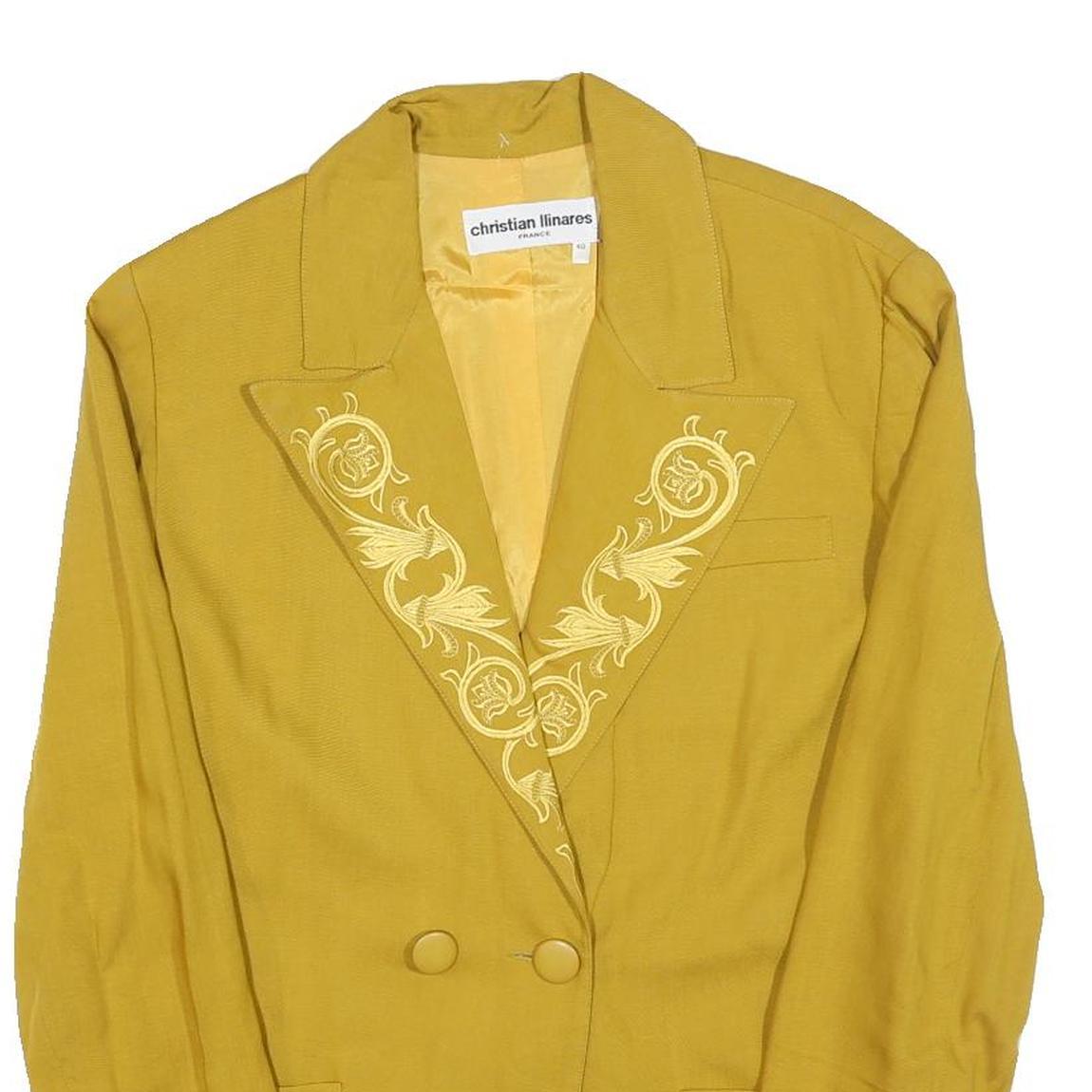 CHRISTIAN ILINARES Womens Yellow Linen Blend Jacket M Button Embroidered