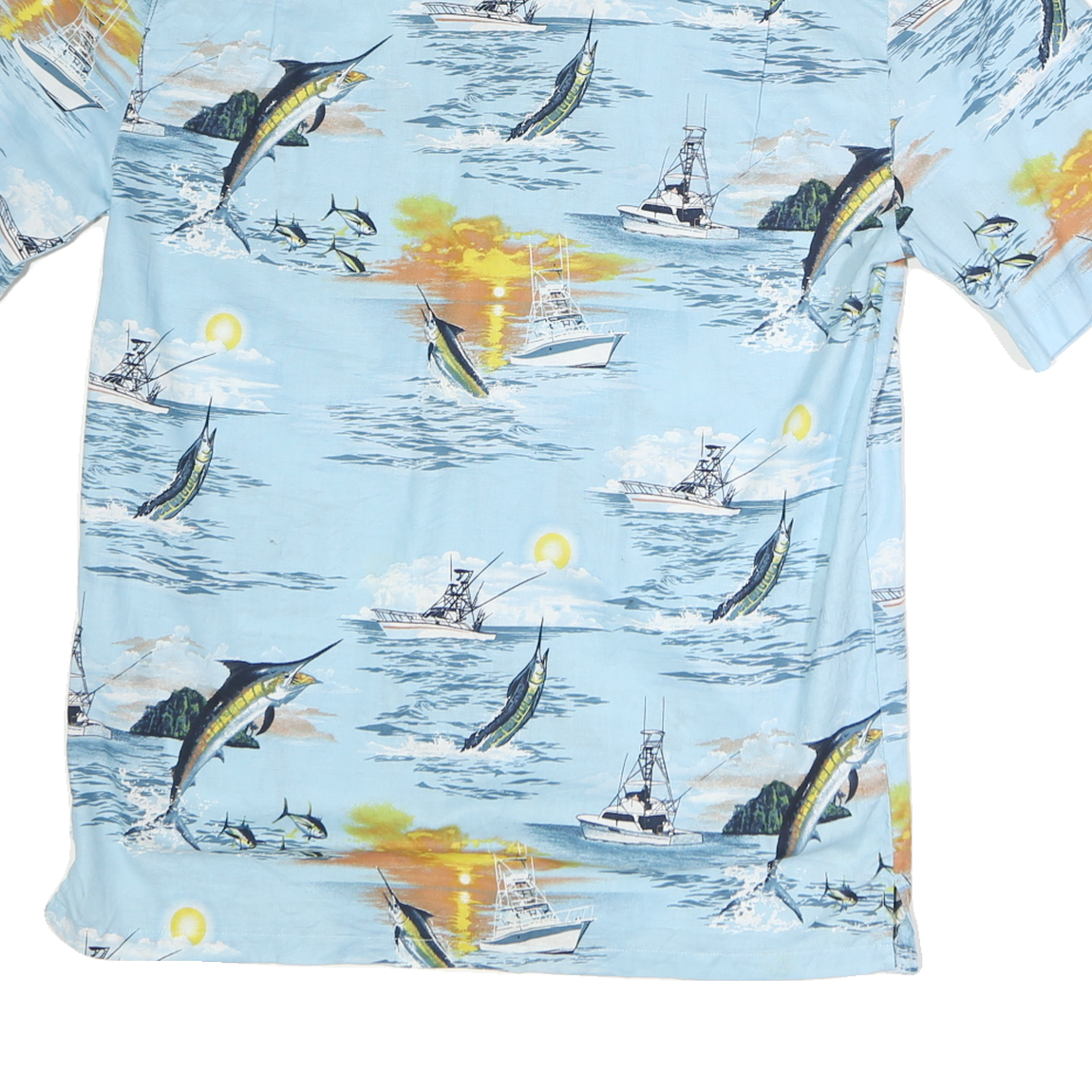CLEAR WATER Mens Blue Fishing Print Casual Shirt M Cotton Summer Beachwear