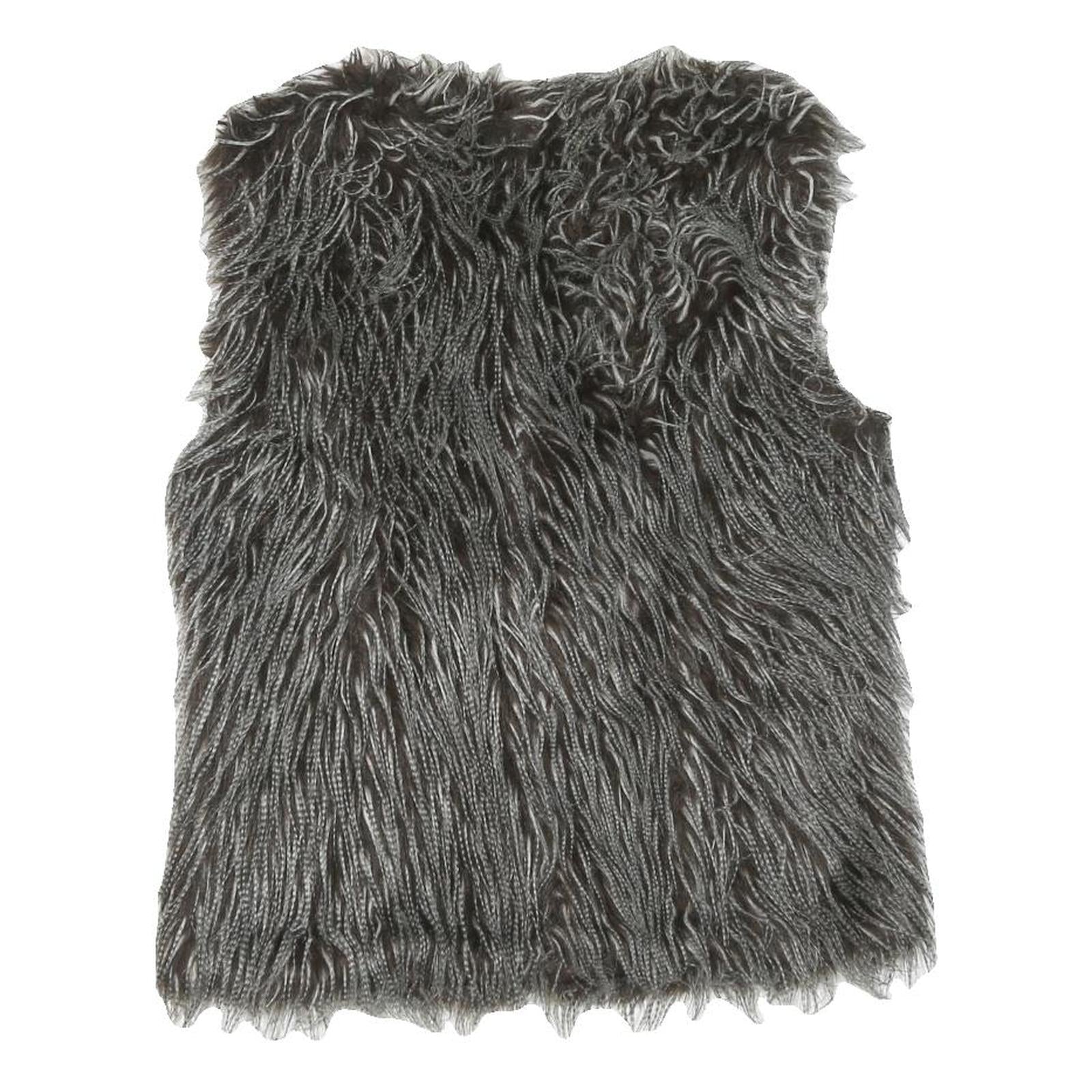 This CLOCKHOUSE womens jacket features a distinctive textured faux fur appearance in a grey colour. The sleeveless design is complemented by a button closure at the front, offering a stylish and practical finish. The jacket's fabric blend includes polyester, providing a soft feel with added durability.