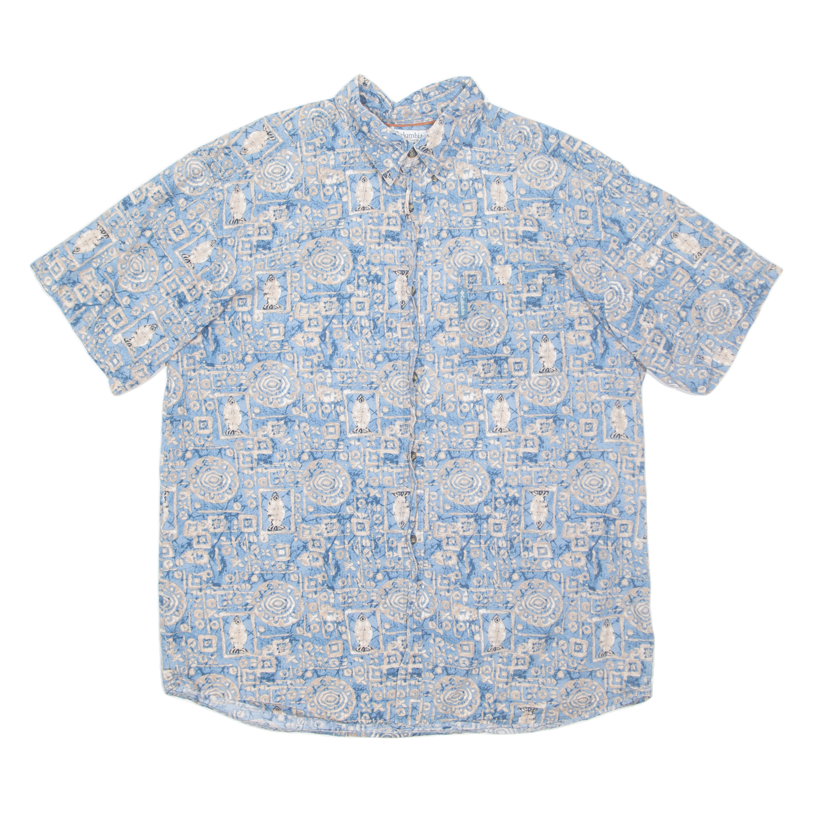 COLUMBIA Mens Hawaiian Shirt Blue Crazy Pattern XL