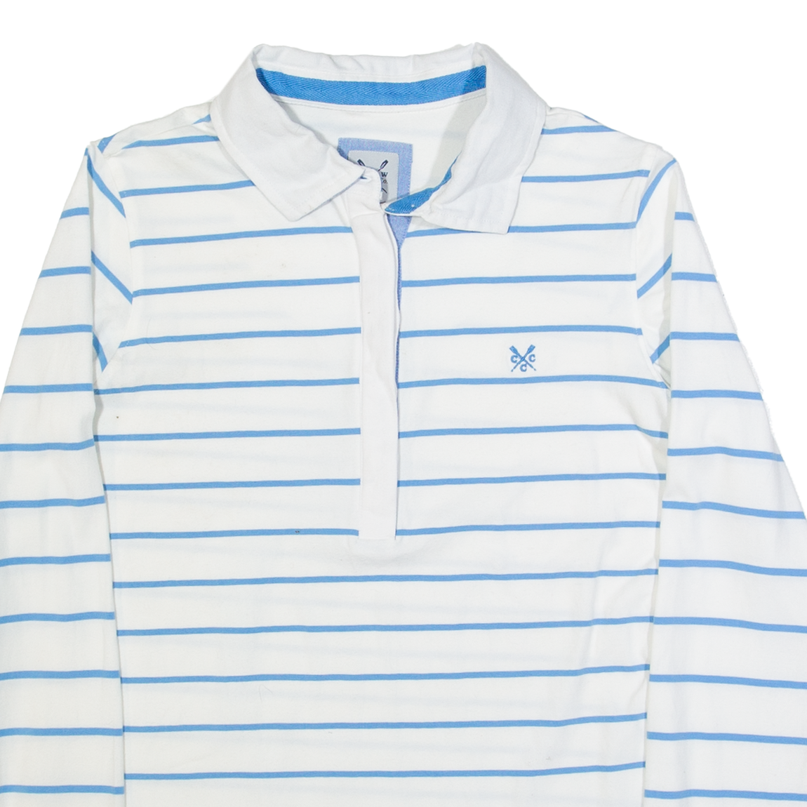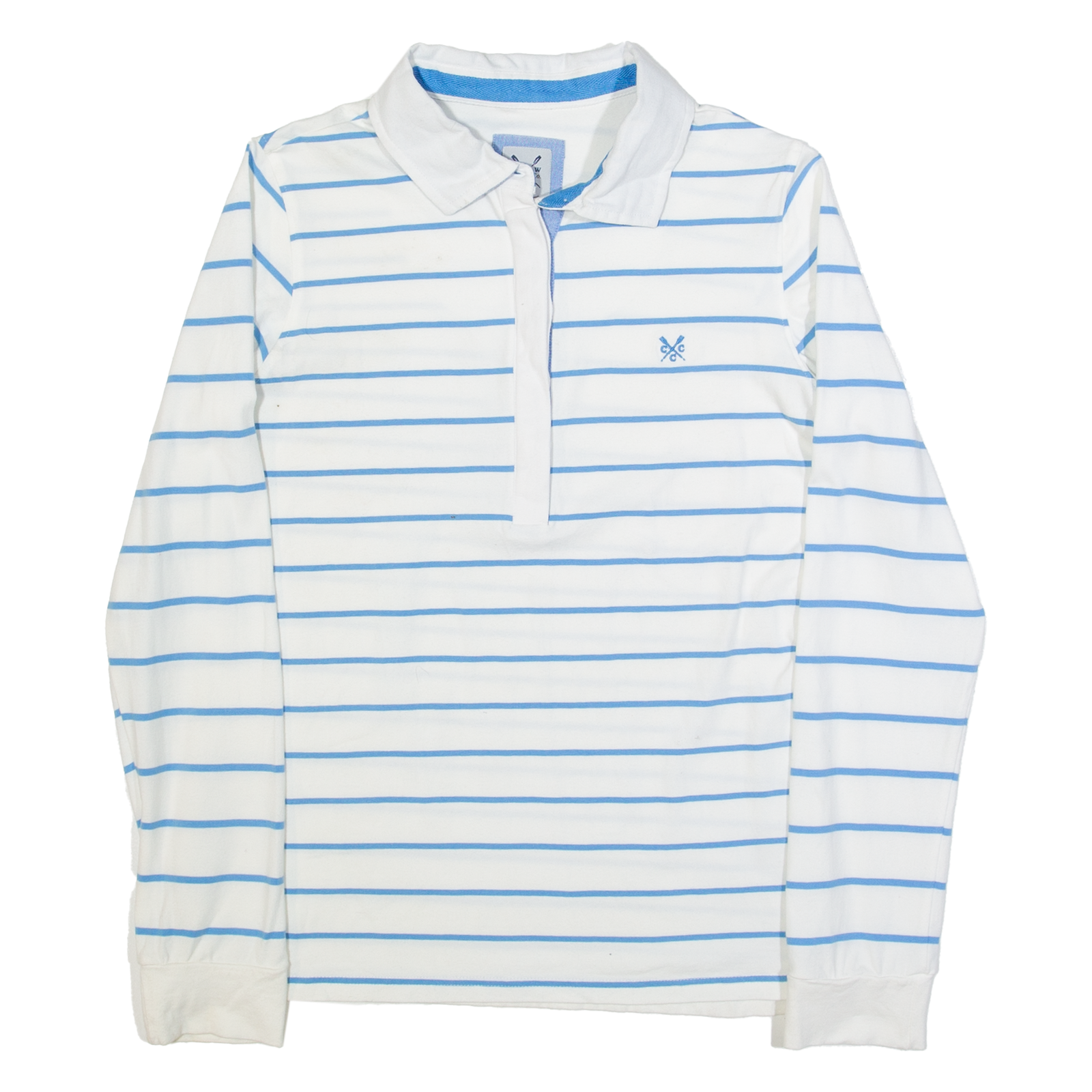 CREW CLOTHING Womens Polo Shirt White Striped Long Sleeve UK 12