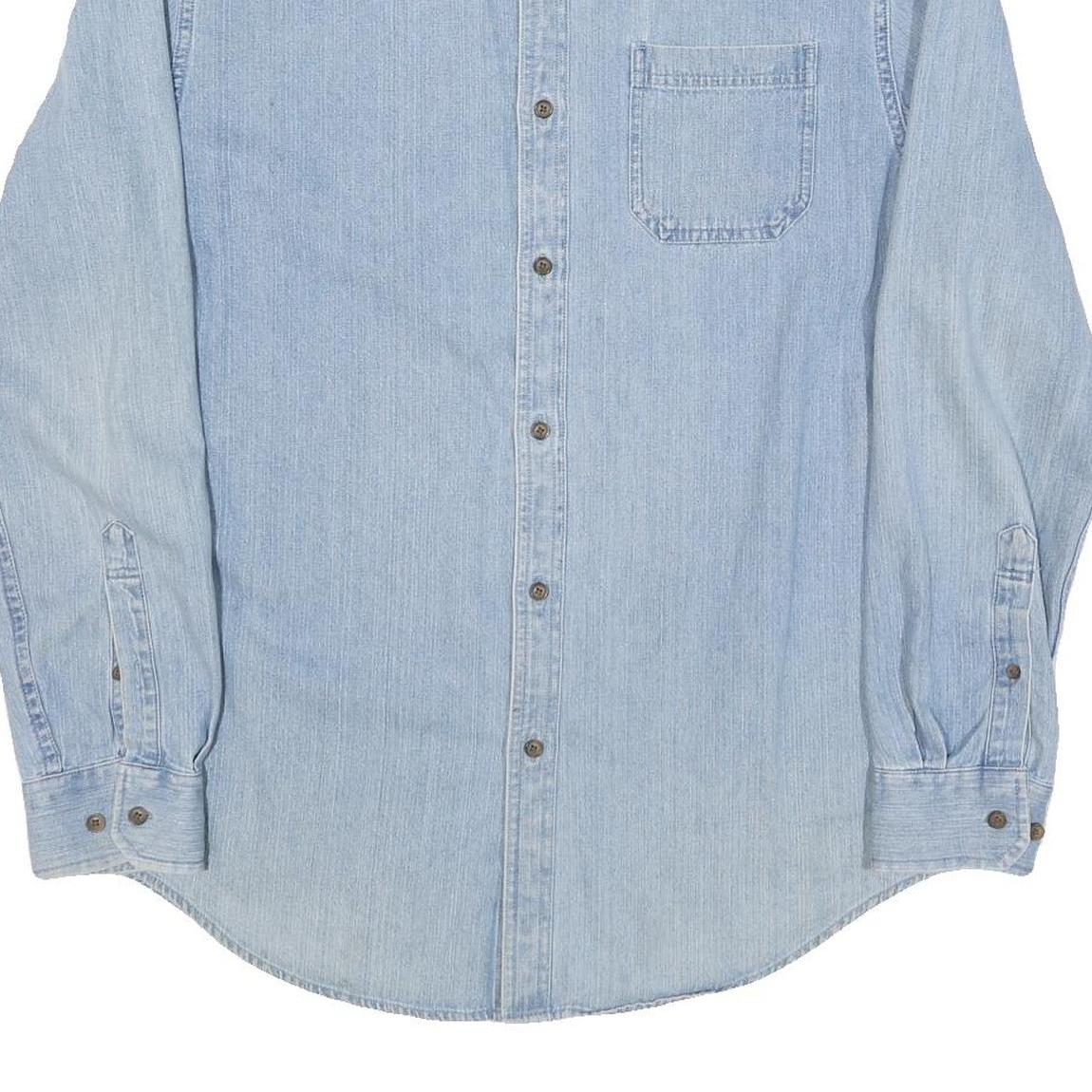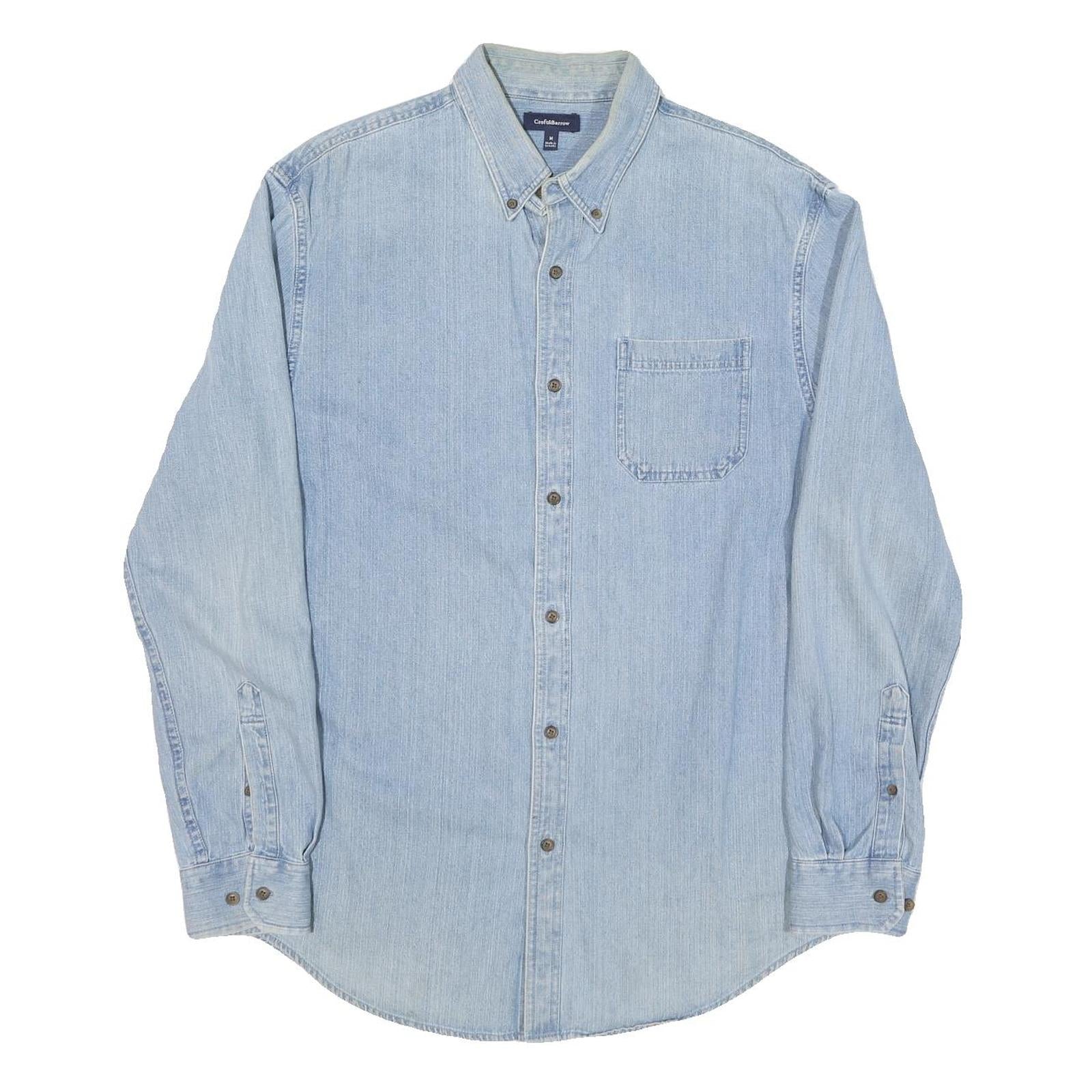 CROFT AND BARROW Mens Blue Light Denim Cotton Blend Shirt M Classic Button-Down