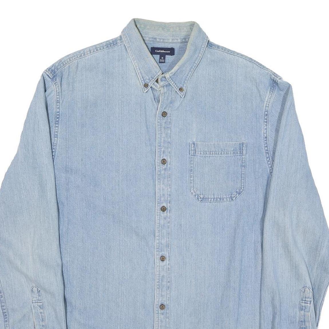 This Croft And Barrow mens shirt is made from a cotton blend in a light blue denim colour, offering a casual and timeless look. It features a classic button-down collar and a single chest pocket, adding subtle style and practicality.