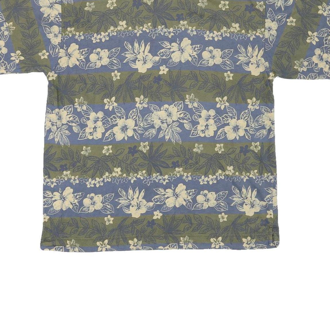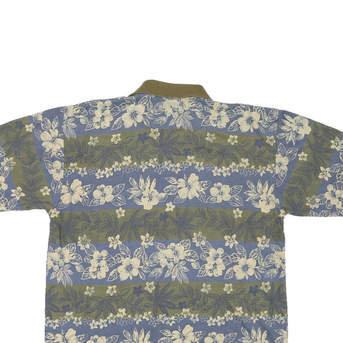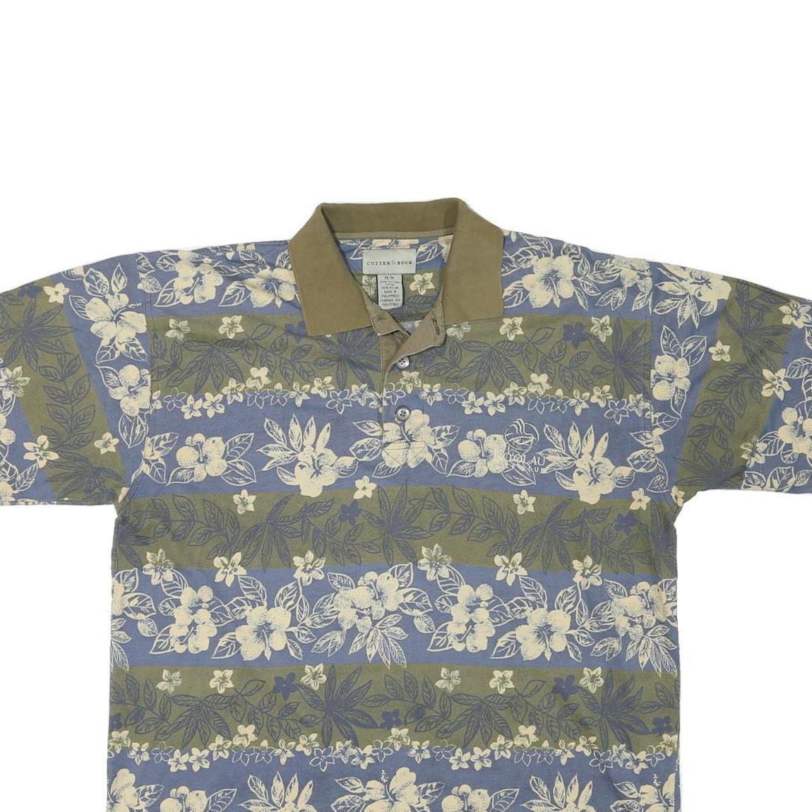 CUTTER & BUCK Mens Blue & Green Floral Short Sleeve Polo Shirt M Cotton Blend
