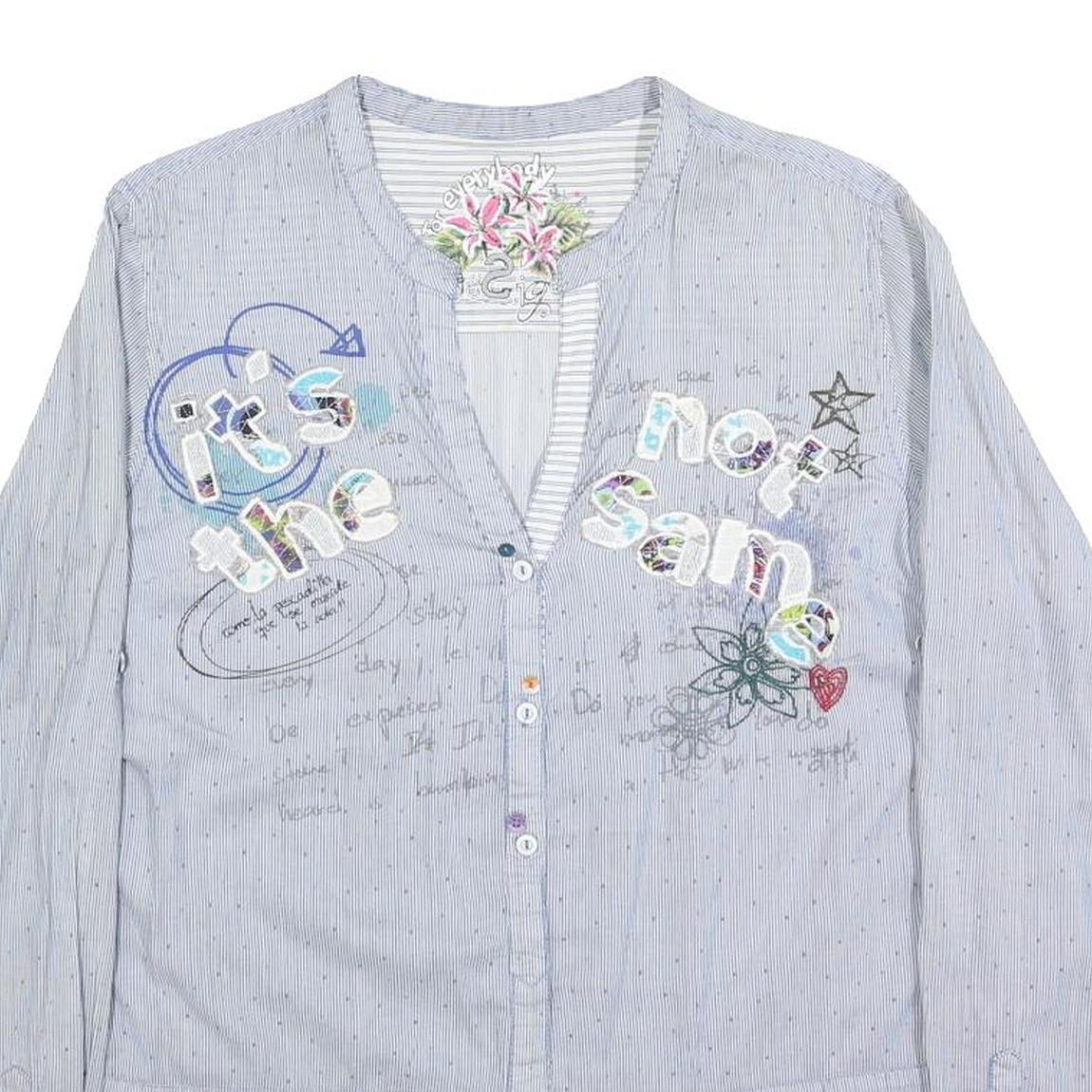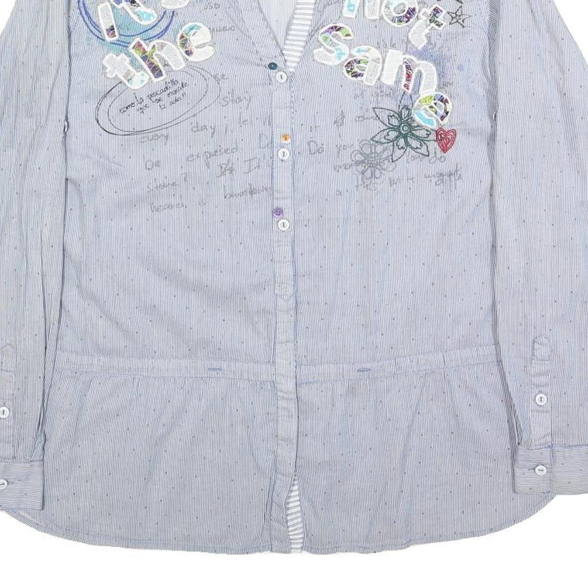 DESIGUAL Womens Blue Cotton Blend Shirt XL Embroidered Casual Button