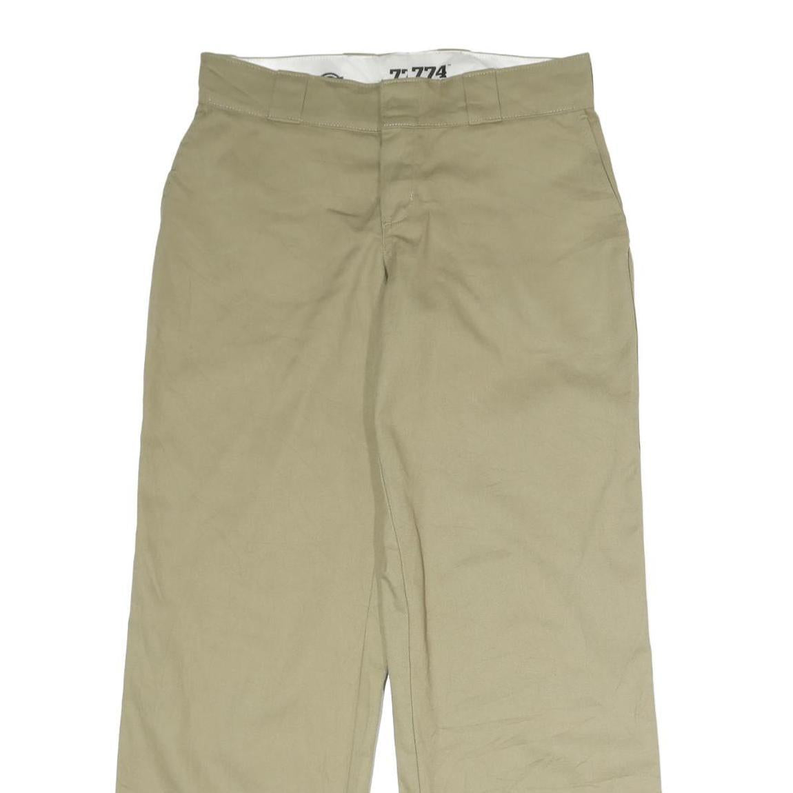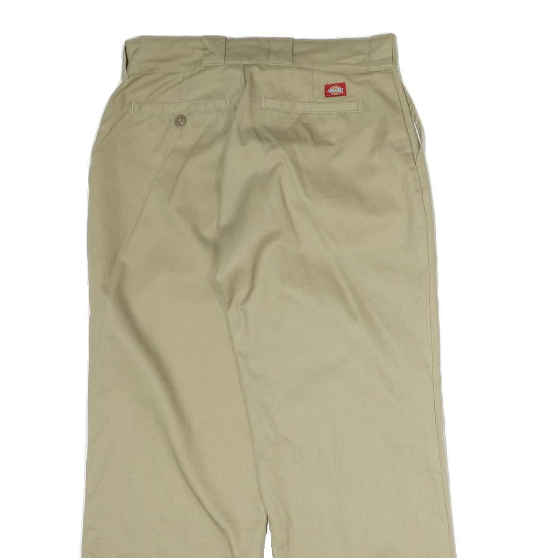 DICKIES Mens Cotton Beige Regular Fit Straight Leg Trousers W36 L30 Workwear