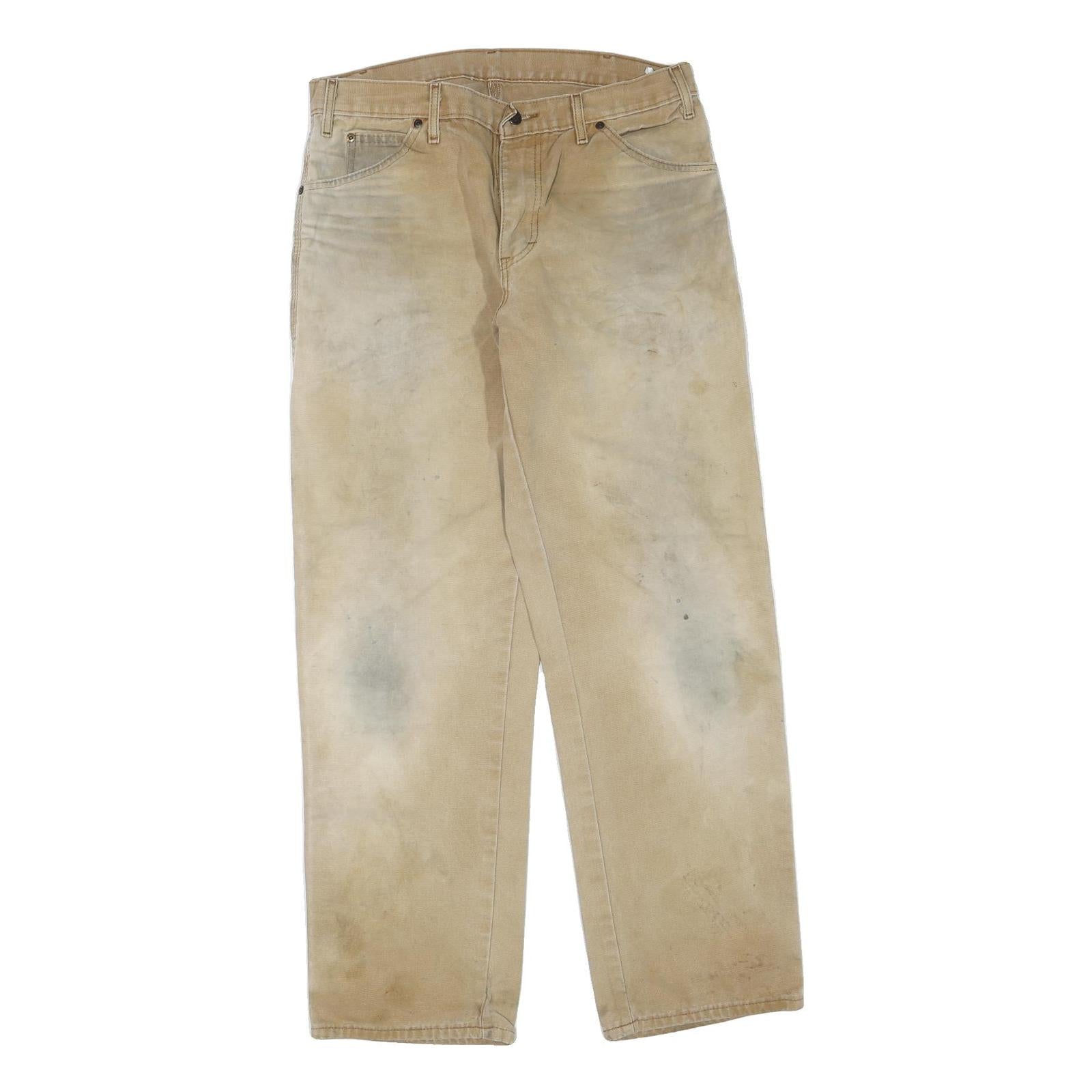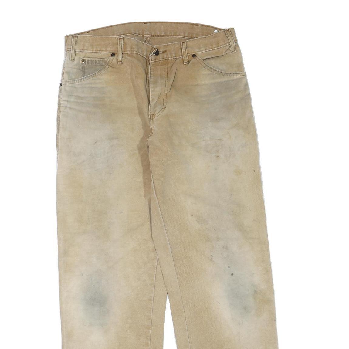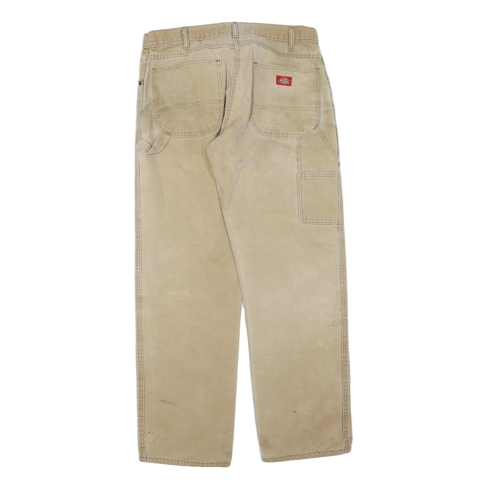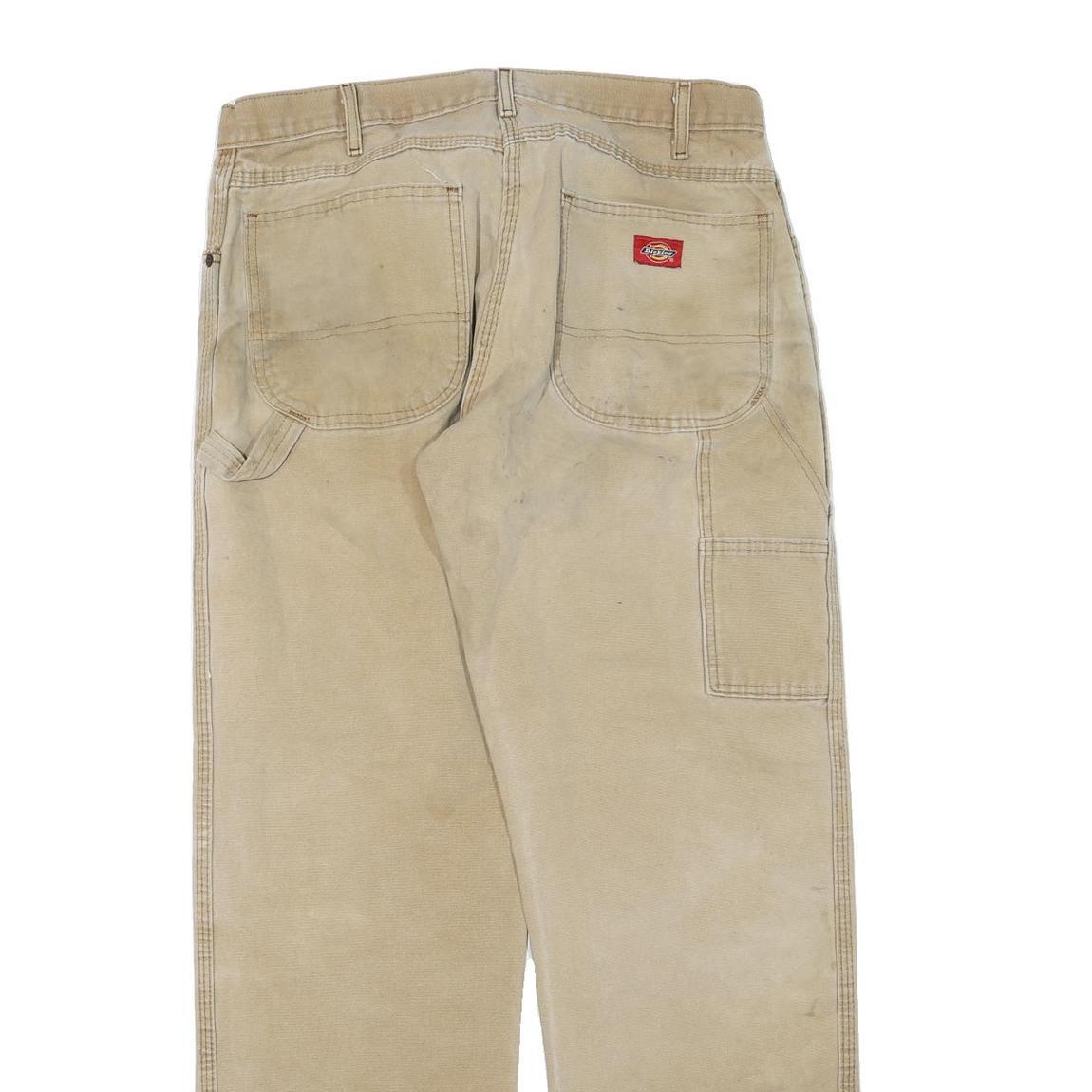DICKIES Mens Cotton Blend Beige Regular Fit Straight Leg Trousers W34 L30