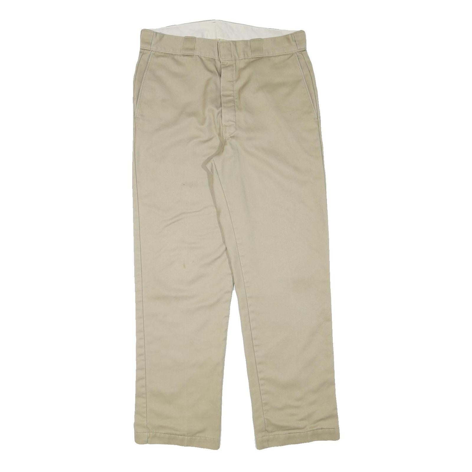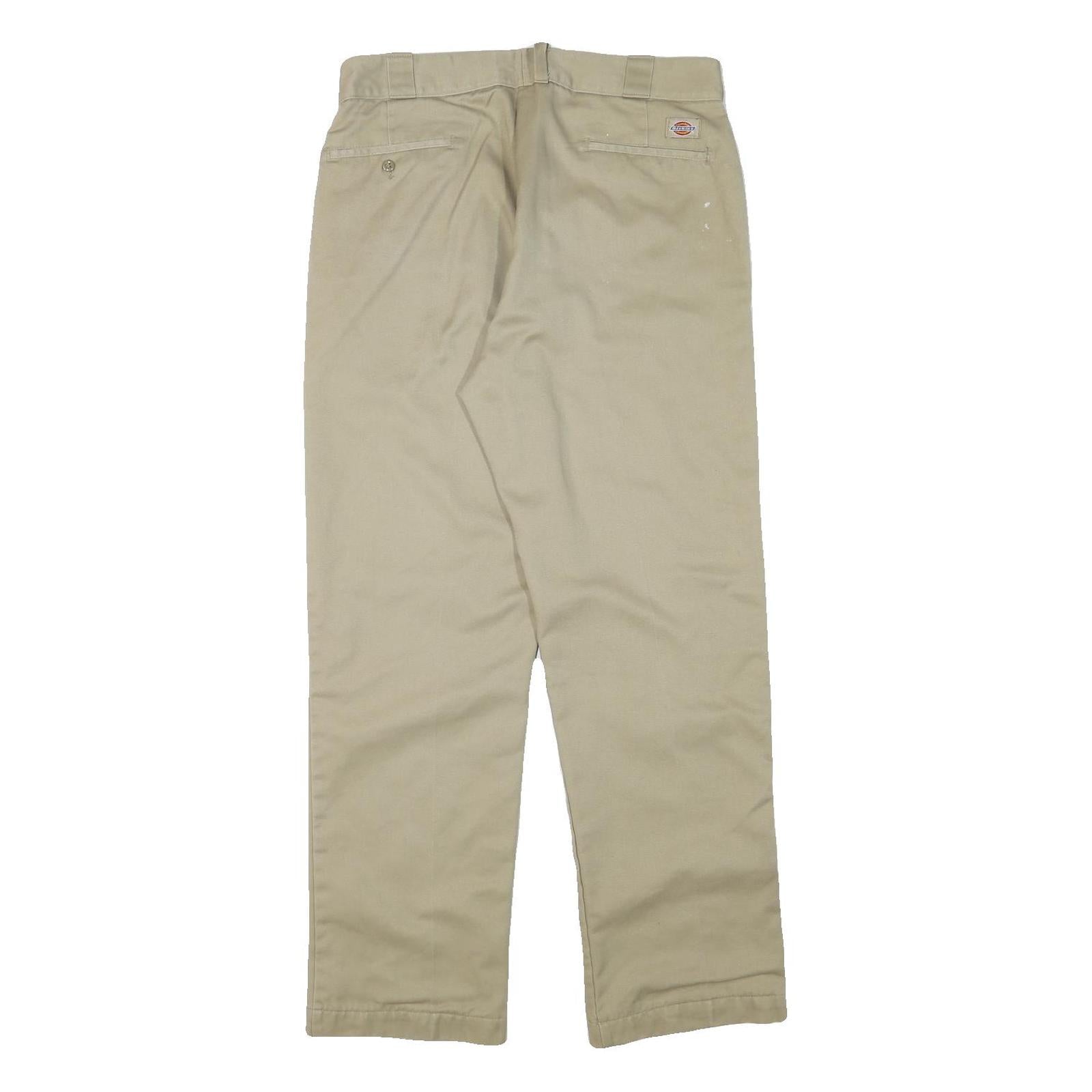 DICKIES Mens Cotton Blend Beige Regular Fit Straight Leg Trousers W34 L31