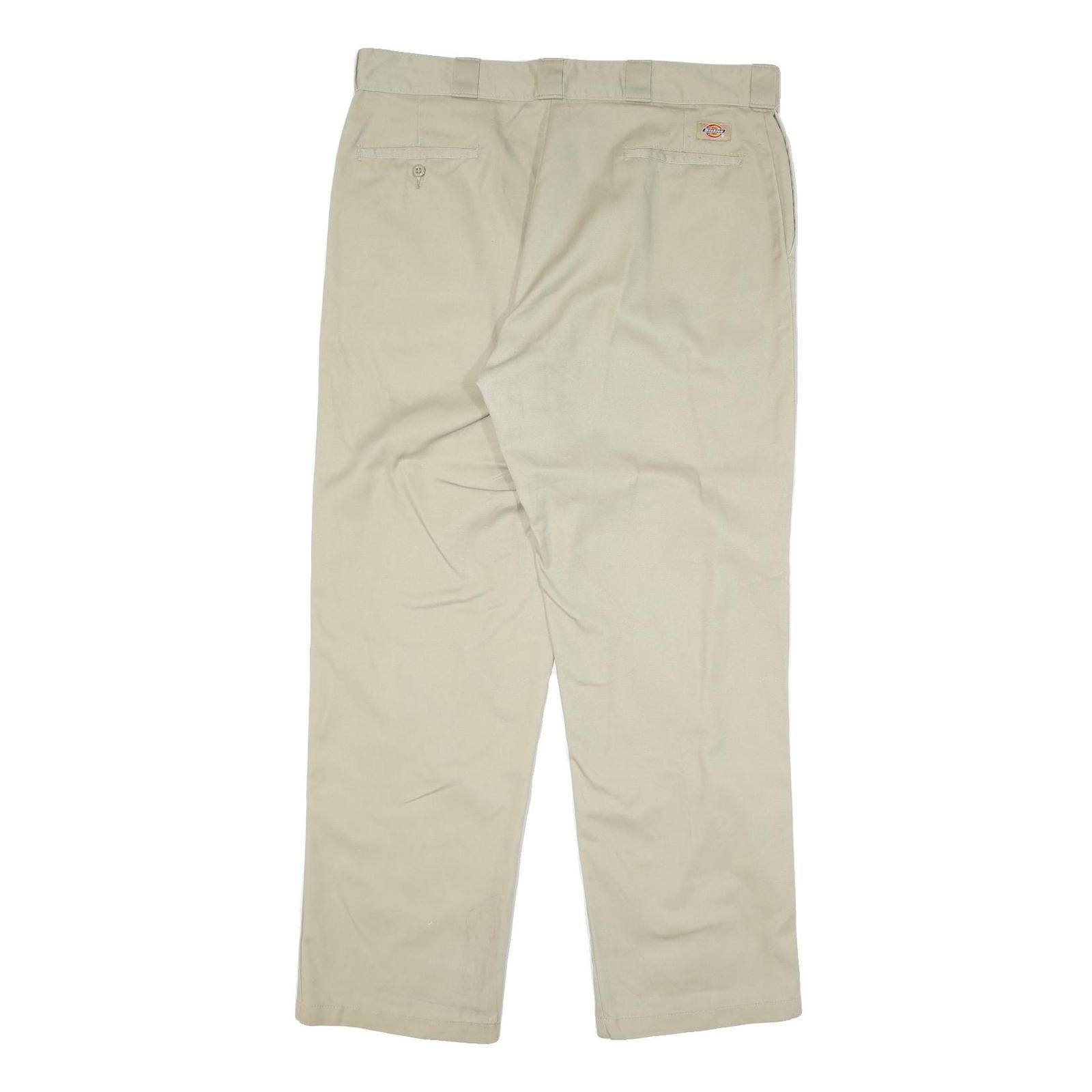 DICKIES Mens Cotton Blend Beige Regular Fit Straight Leg Trousers W38 L32