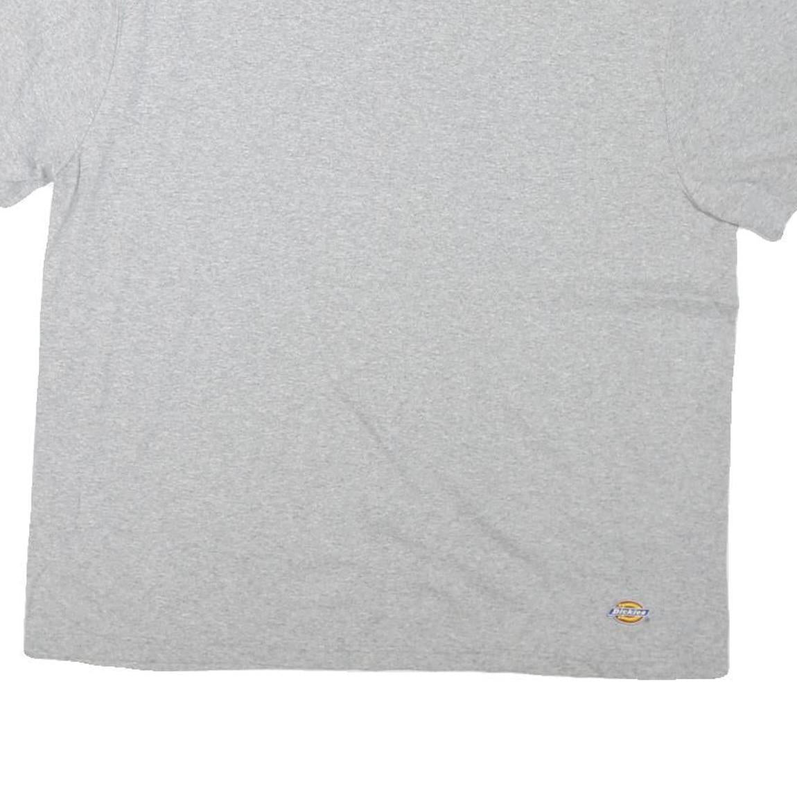 This Mens Dickies T-Shirt comes in a light grey colour crafted from a cotton blend for comfort and durability. It features a minimalistic design with a small Dickies logo patch subtly placed near the hem on the front, adding a touch of branded detail without overwhelming the plain style.
