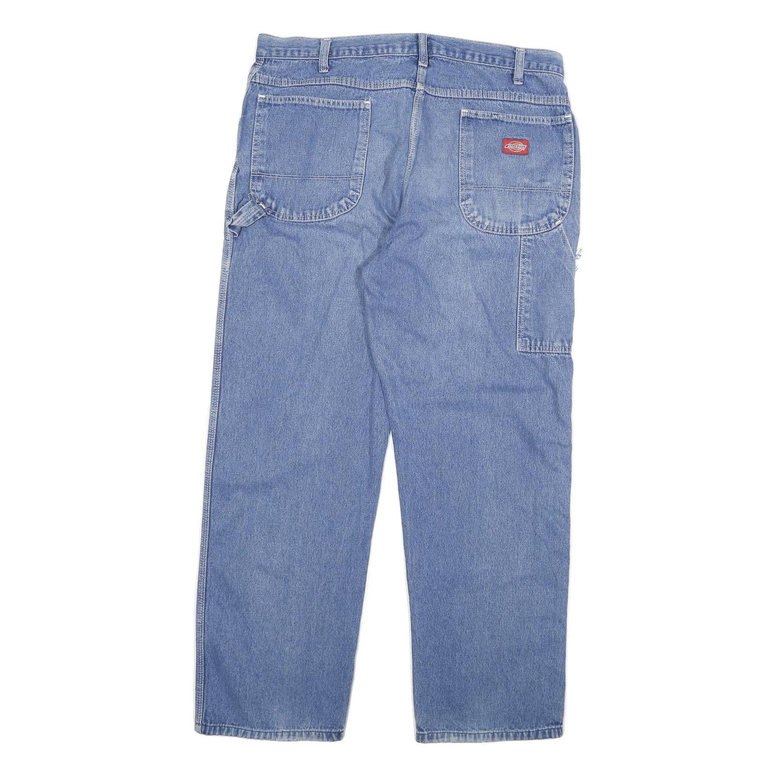 DICKIES Mens Jeans Blue Regular Straight Denim Medium W35 L29 Workwear Zip