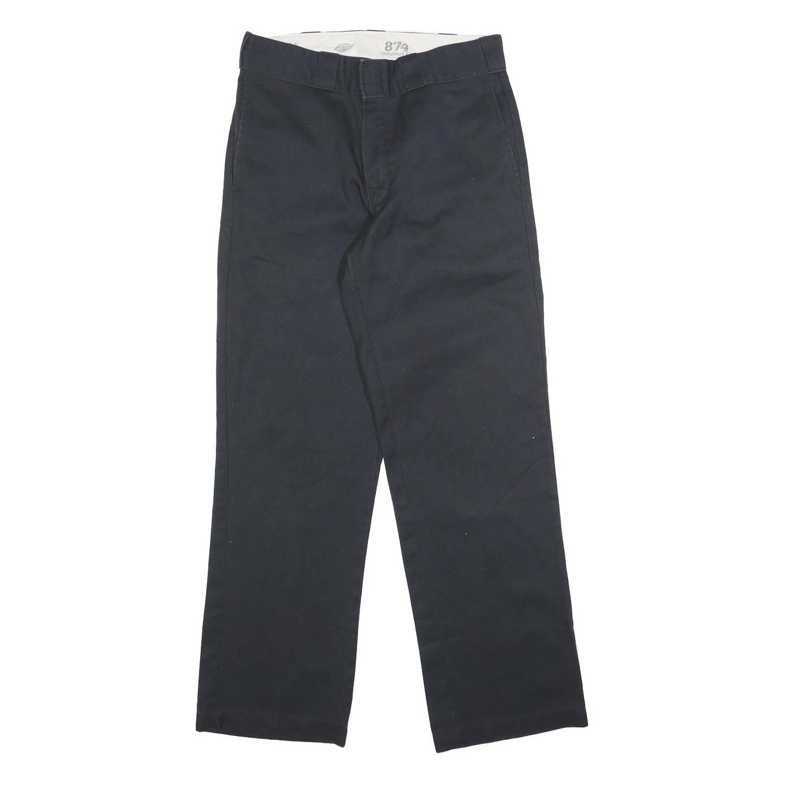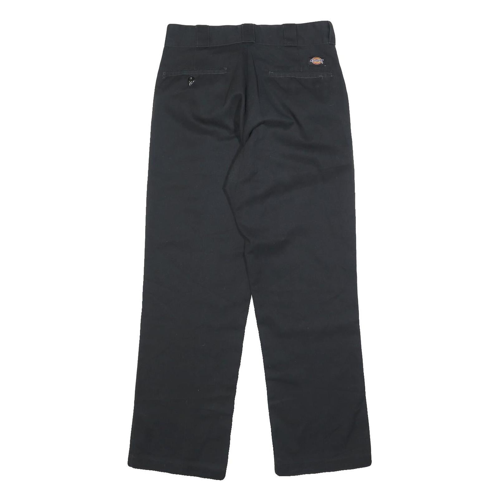 DICKIES Mens Regular Black Cotton Blend Trousers W30 L30 Classic Straight Zip