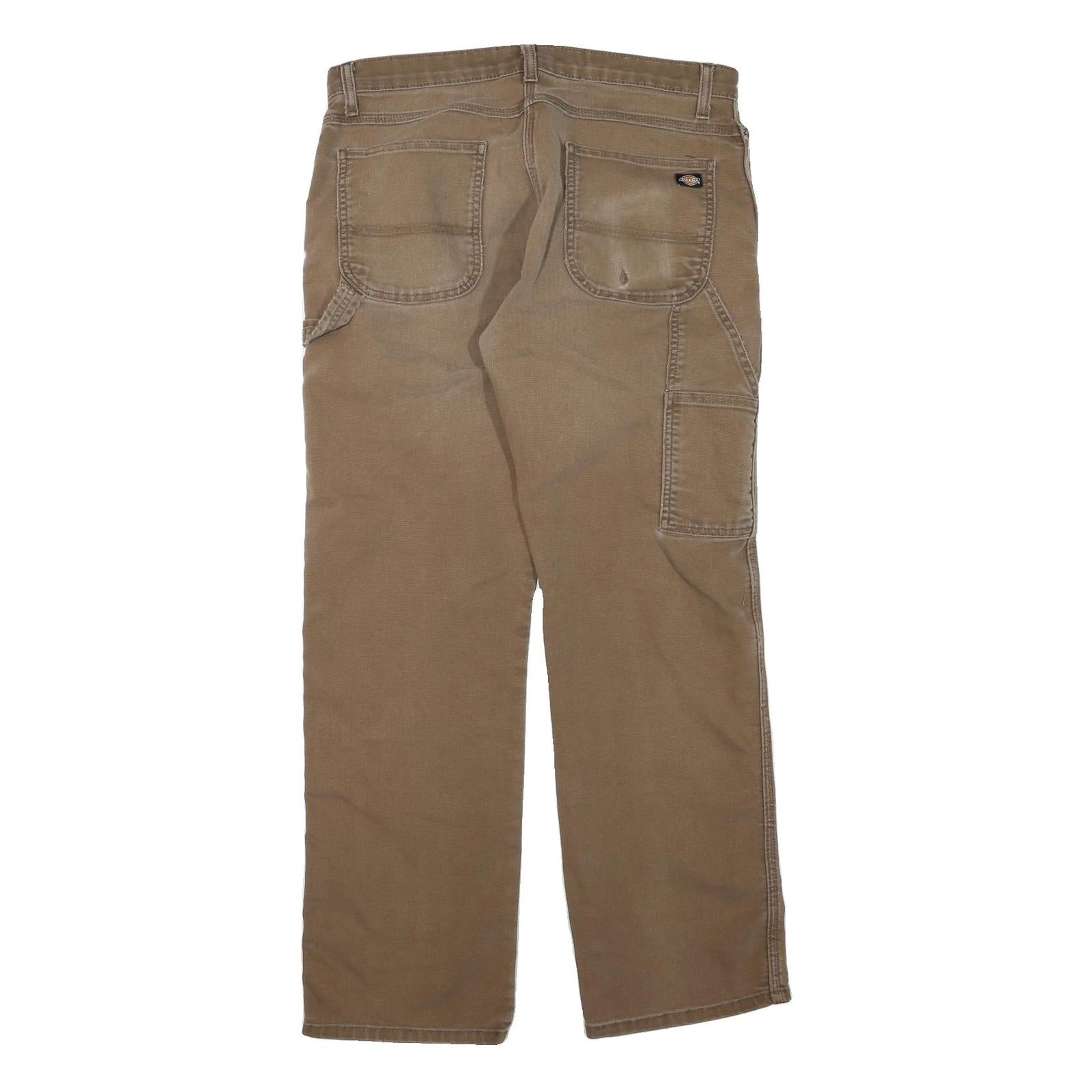 DICKIES Mens Regular Fit Straight Cotton Blend Brown Zip W34 L30 Workwear Jeans