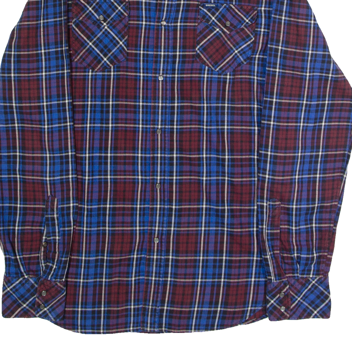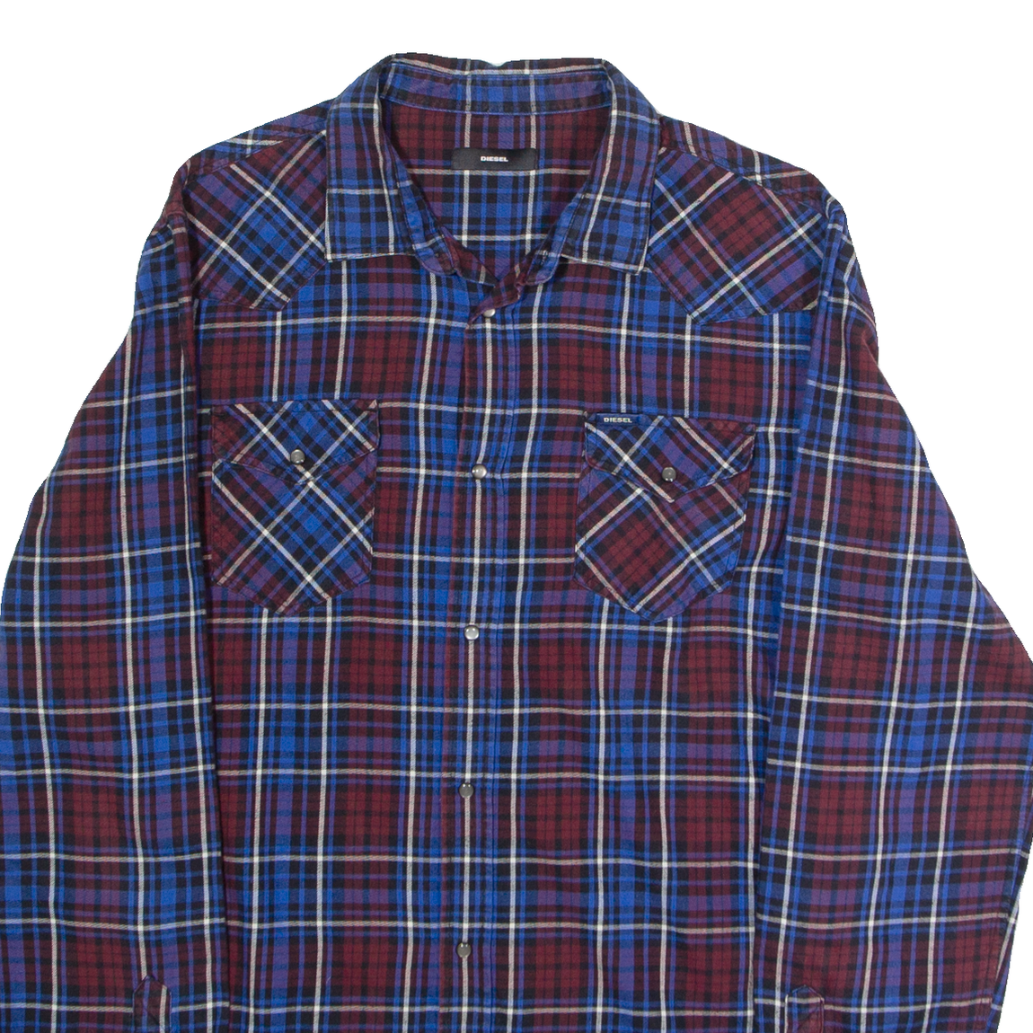 DIESEL Western Mens Shirt Blue Check Long Sleeve L