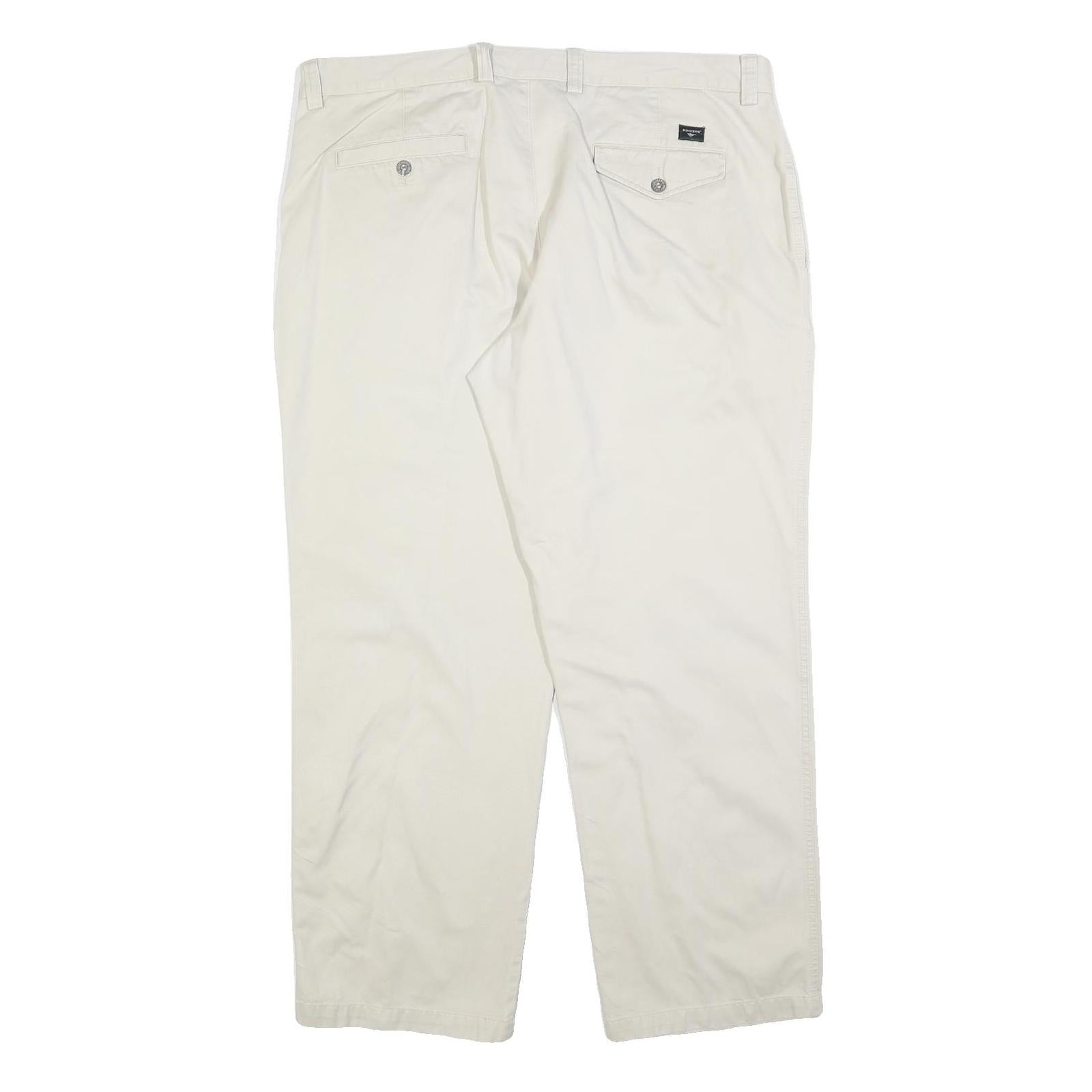 DOCKERS Mens Cotton Blend Cream Classic Fit Straight Leg Trousers W40 L32 Casual