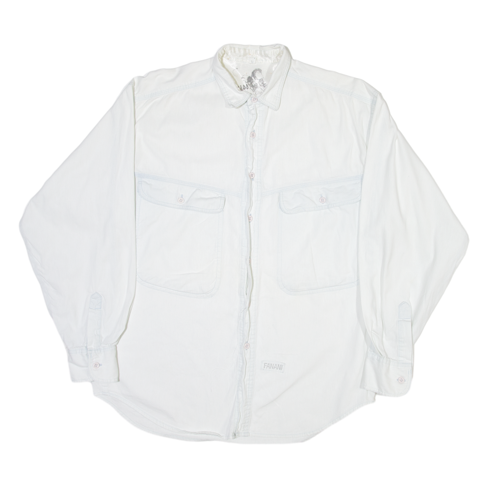 FANANI Mens Plain Shirt White Long Sleeve S