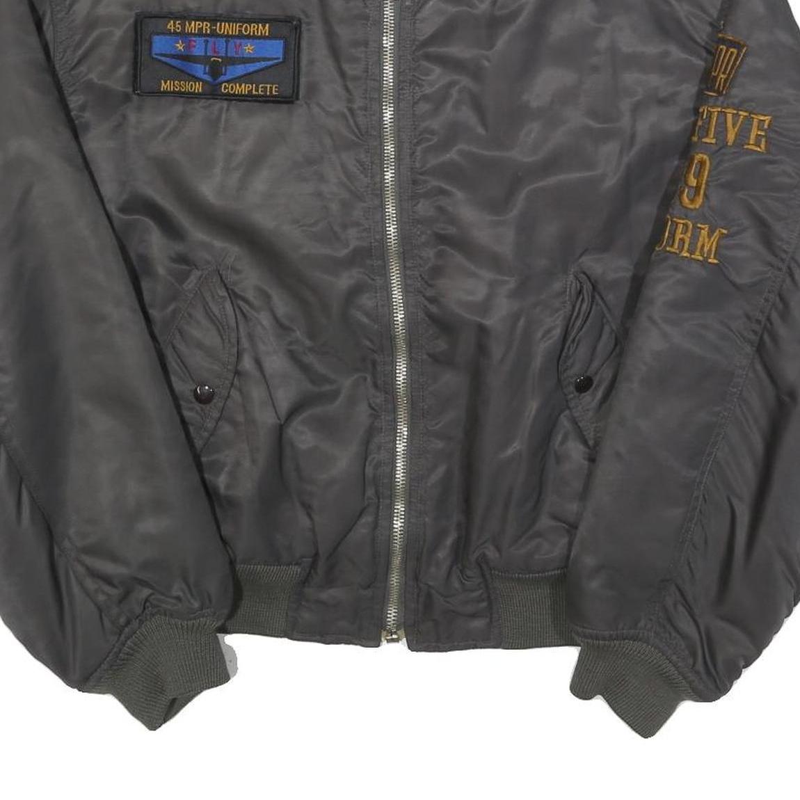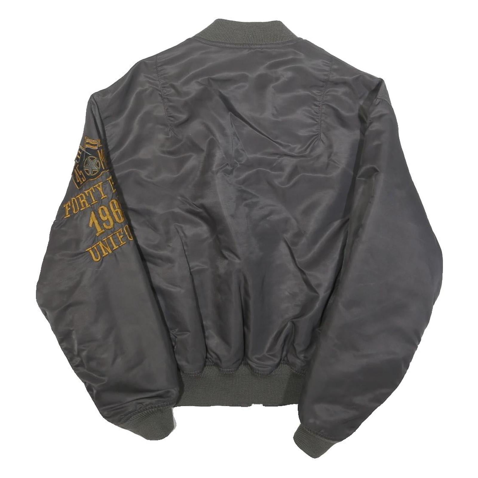 FOURTY FIVE Mens Grey Bomber Jacket M Polyester Military Style Zip M