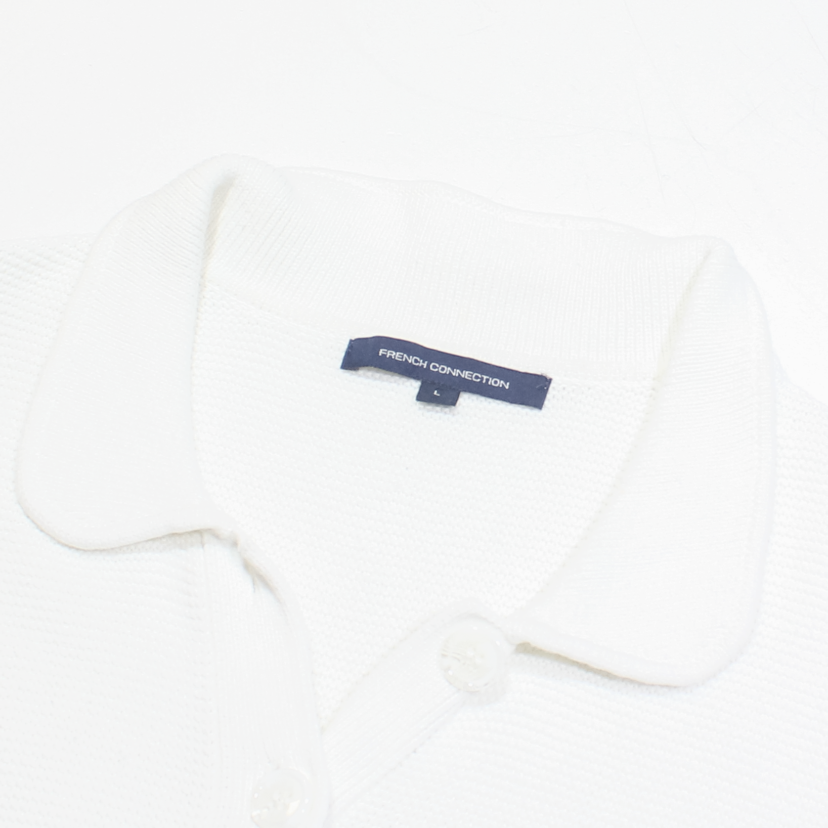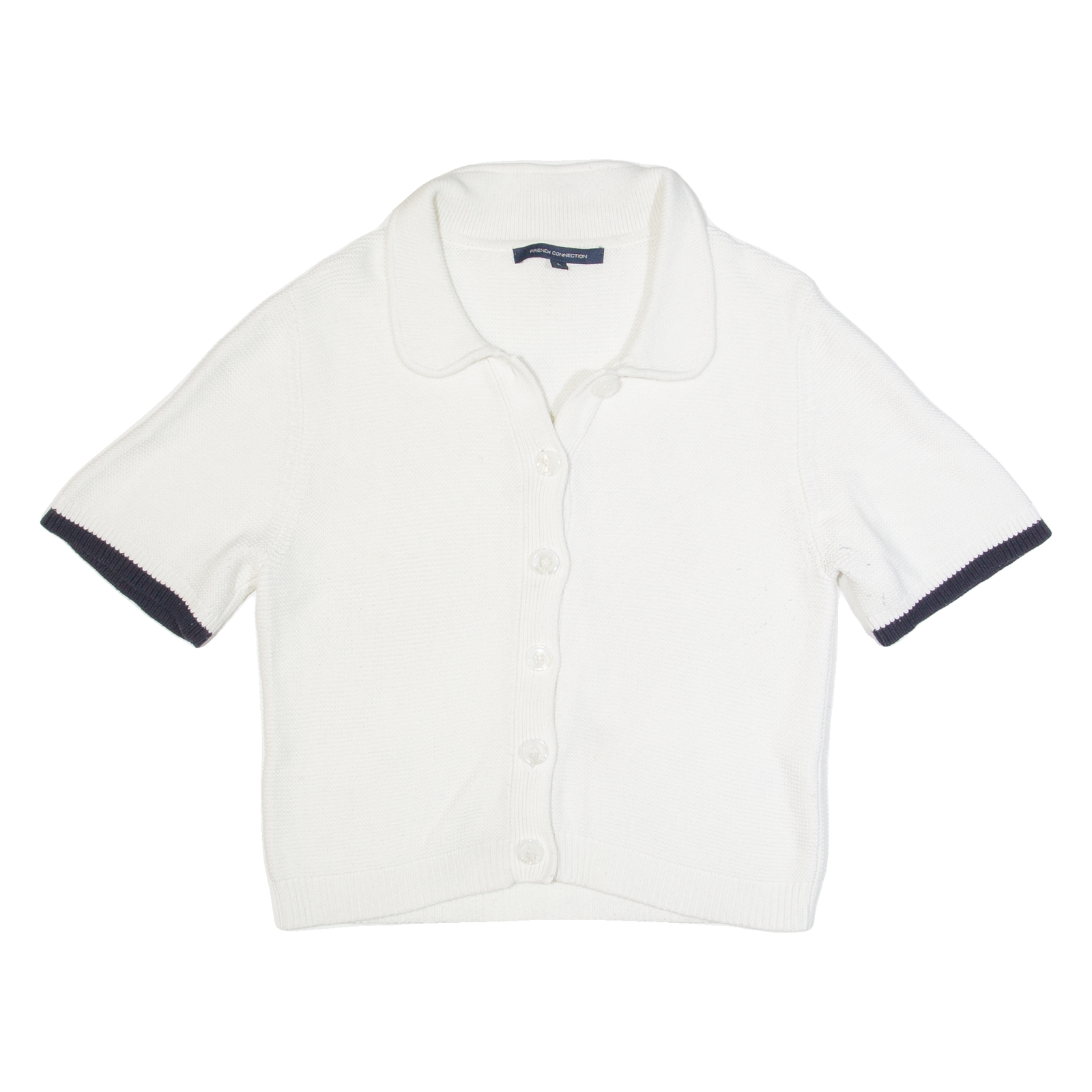 FRENCH CONNECTION Womens Jumper White Collared Waffle Knit Short Sleeve L
