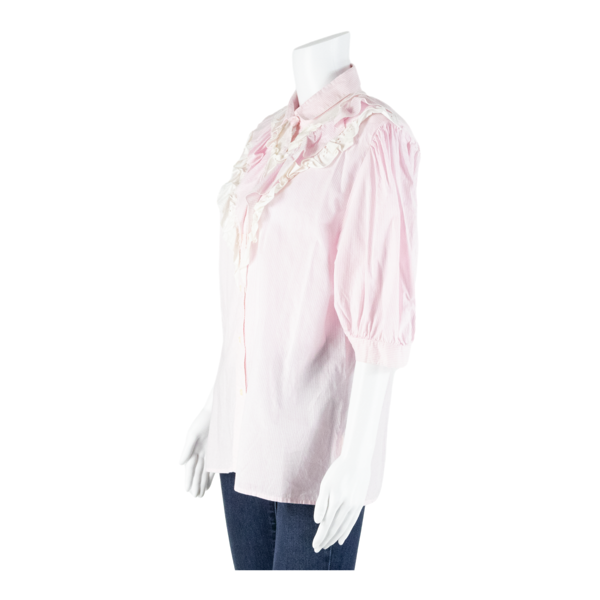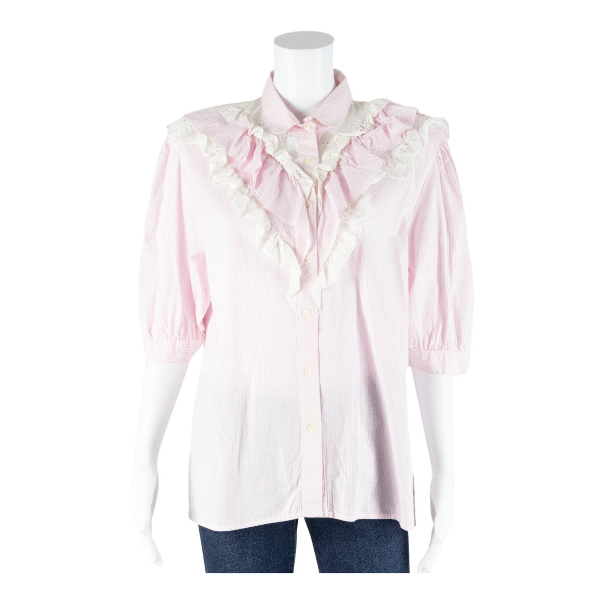 Frill Womens Shirt Blouse Pink Collared 3/4 Sleeve Striped L