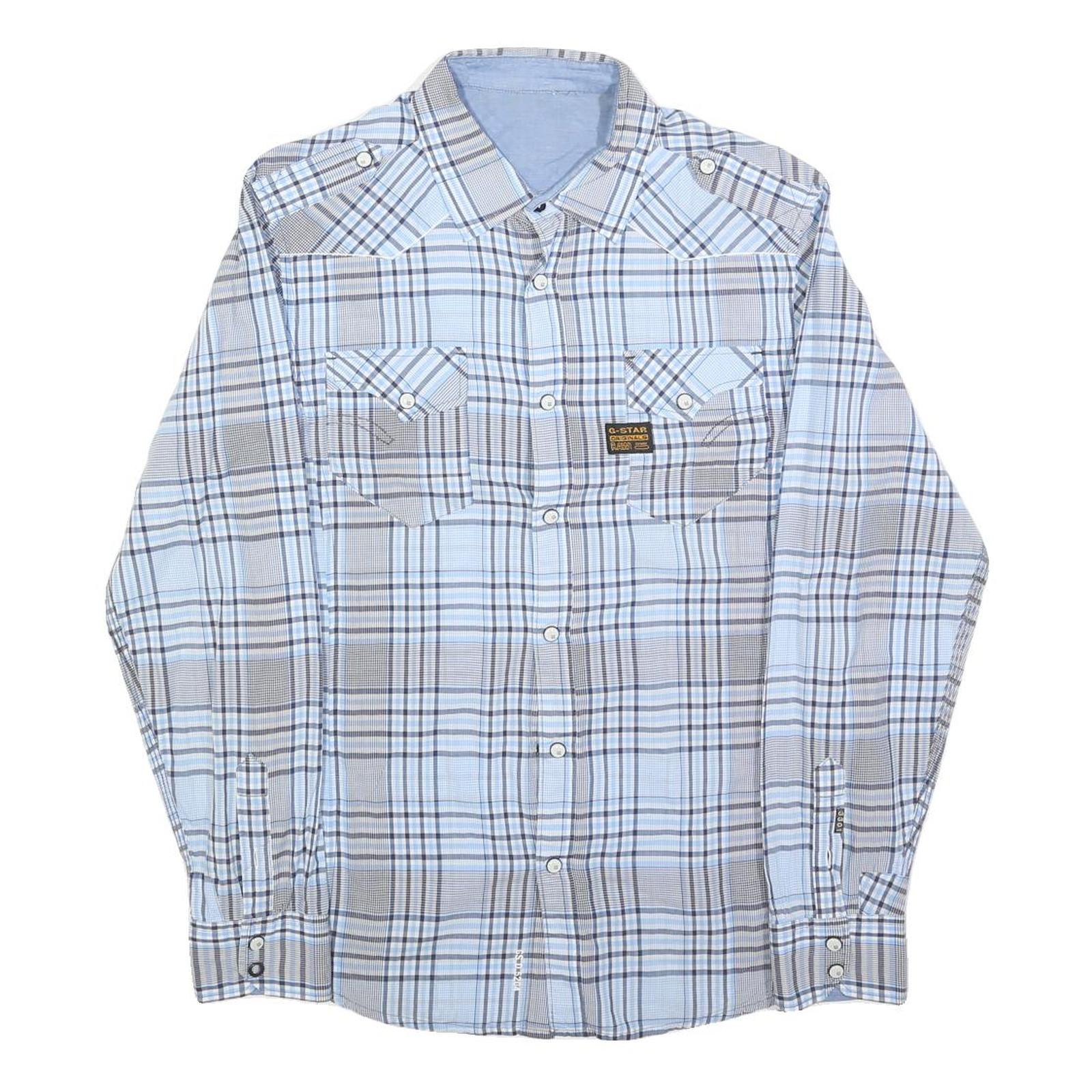 G-STAR Mens Blue & Grey Check Shirt S Casual Cotton Blend Western Style Long