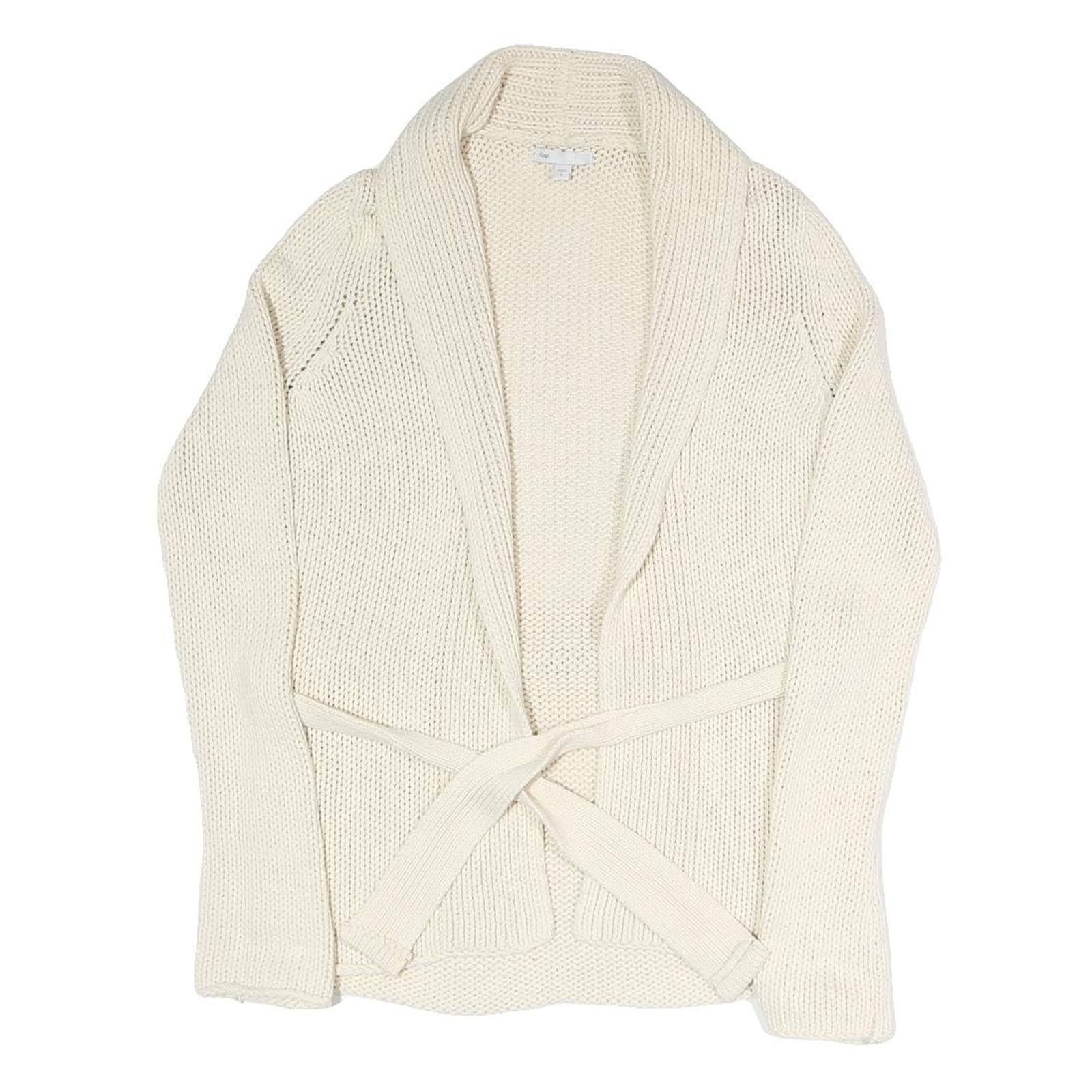 GAP Womens Cream Plain Chunky Knit Shawl Collar Cardigan S Belted Stylish