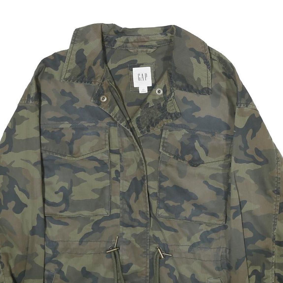 GAP Womens Green Camouflage Cotton Blend Jacket XS Zip Military Style Casual