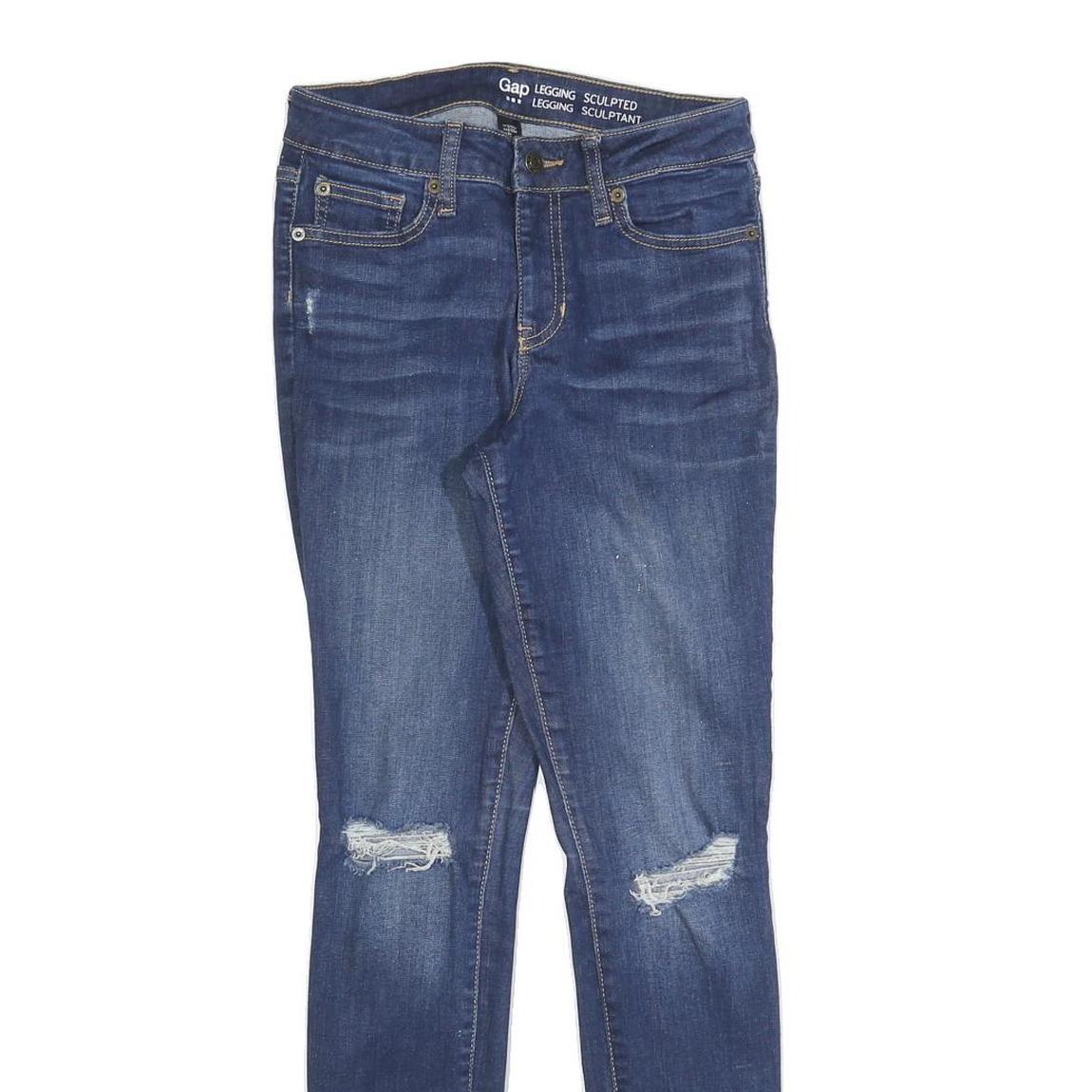 GAP Womens Slim Fit Skinny Denim Jeans Blue Cotton Blend W26 L30 Ripped Knee
