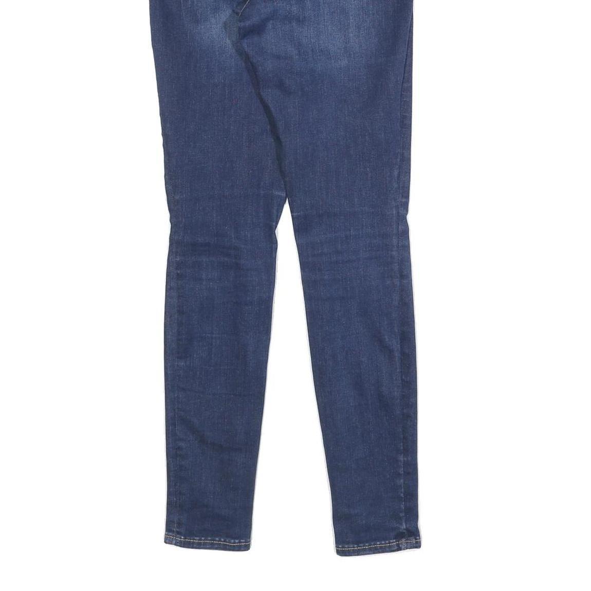 These womens jeans from GAP feature a classic skinny fit with a slim cut that sculpts the legs. The deep blue denim is accented by subtle distressed detailing at the knees and light fading washes that create a casual, worn-in look.