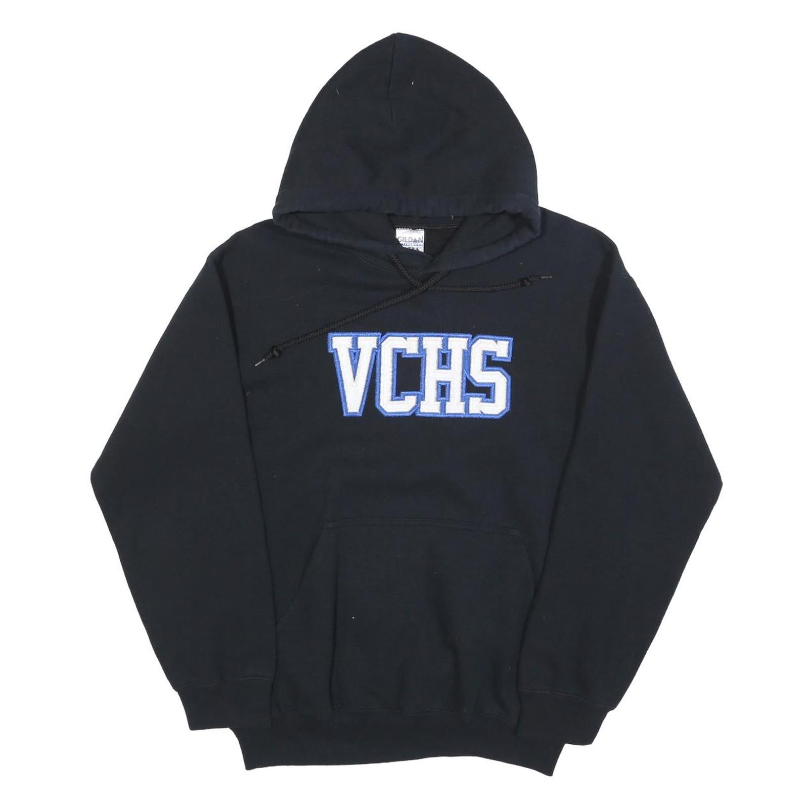 GILDAN Mens Black Hoodie S VCHS Cotton Blend Pullover Casual Hooded Sweatshirt