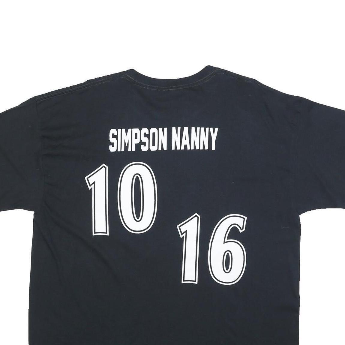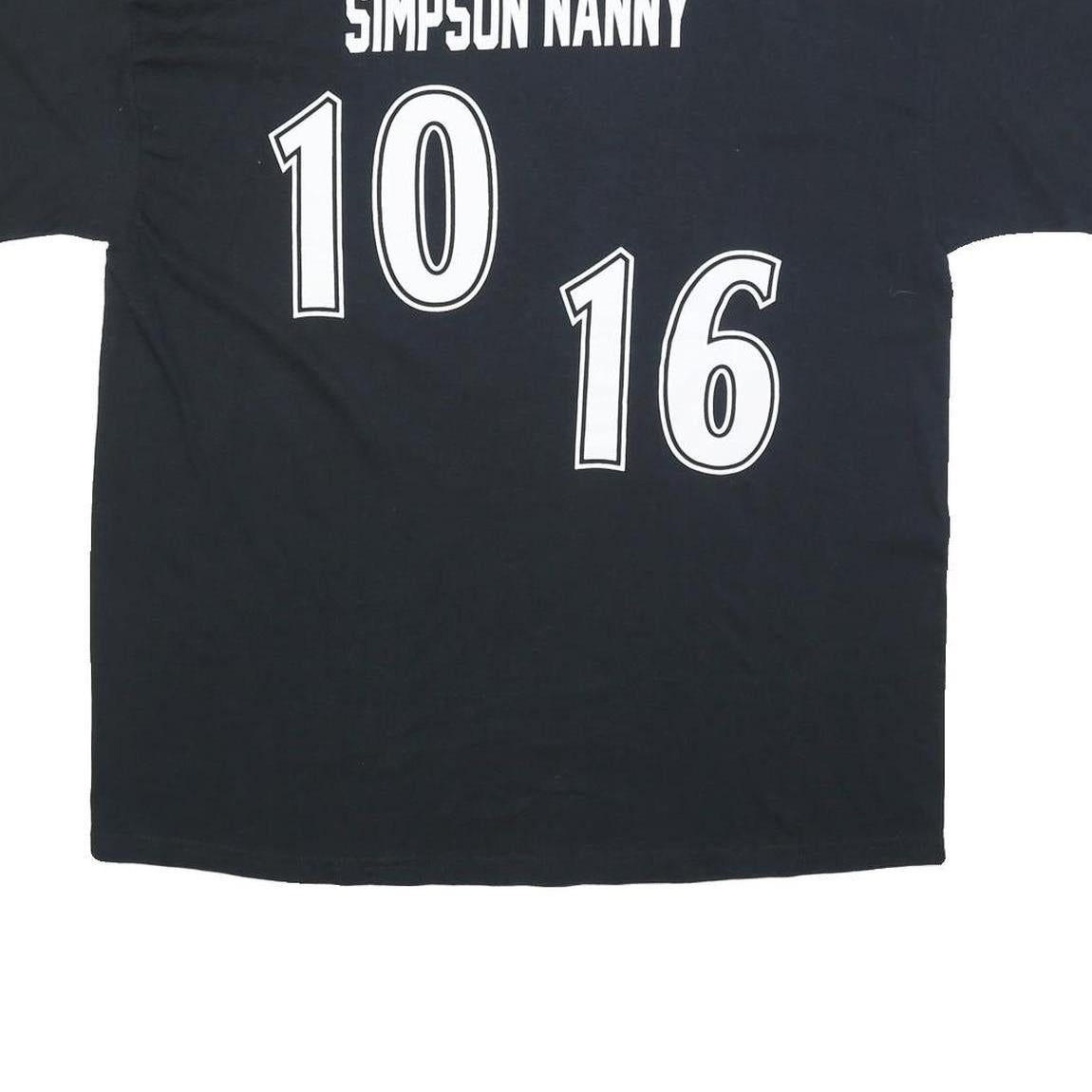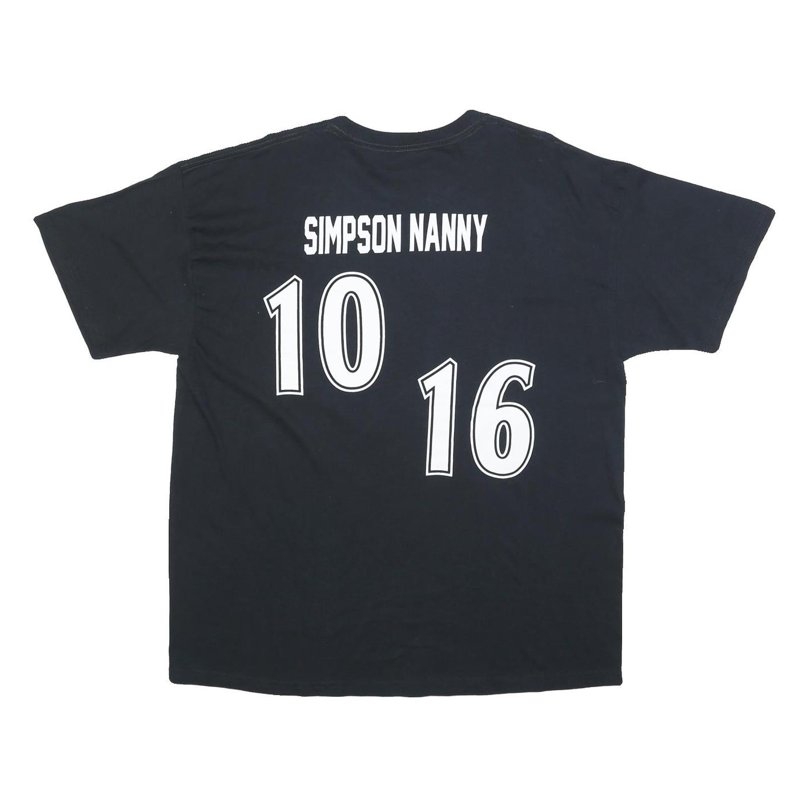 This GILDAN t-shirt features a bold black colour with the word "ROCKIES" printed prominently across the front in large white and purple outlined letters. The back showcases a unique print with the text "SIMPSON NANNY" above large white numbers "10" and "16" in a sporty font style.